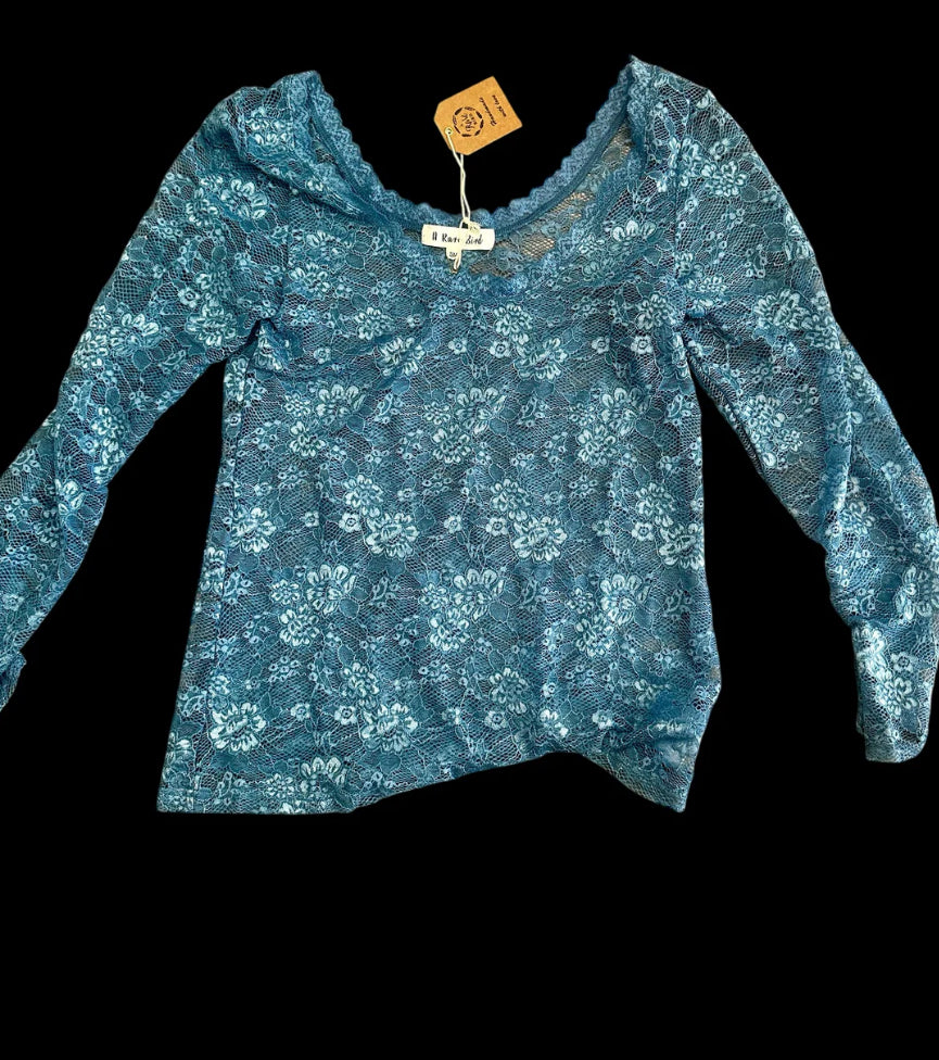 Six beautiful colors of this scoop neck lace shirt gives a new look to any ensemble.  sm (2-10) lxl (12-2x) This shirt is a must have for any wardrobe. Very nice soft lace...only the BEST for A RARE BIRD!