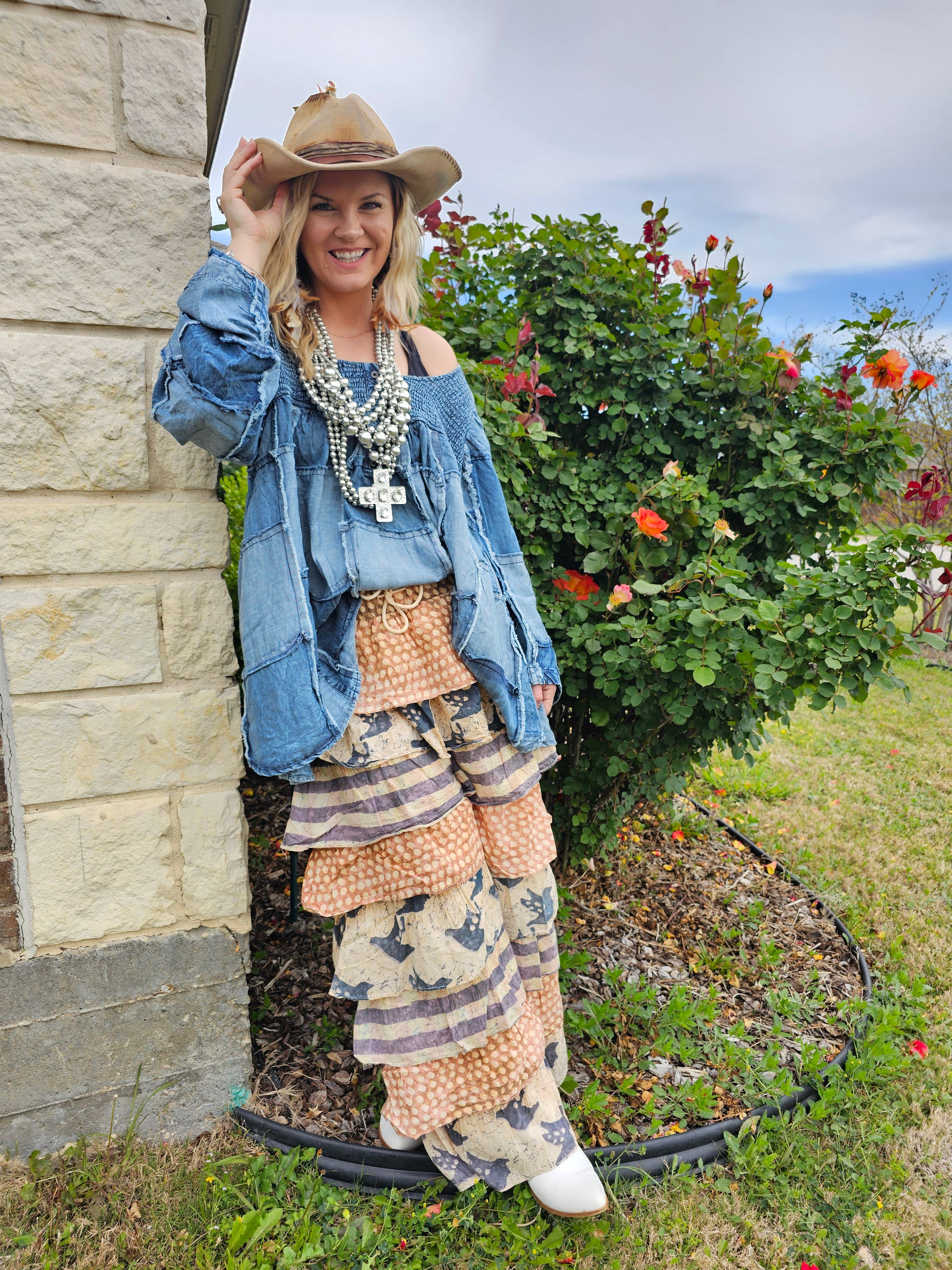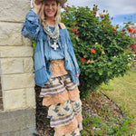 Adorable soft ruffles create the perfect look and comfy feel for these pants. They are soft with drawstring and elastic waist. The ruffles interchange with birds, stripes and dots. Looks amazing with everything but especially our Birdie shirt Tunic and patch denim Key hole shirt.