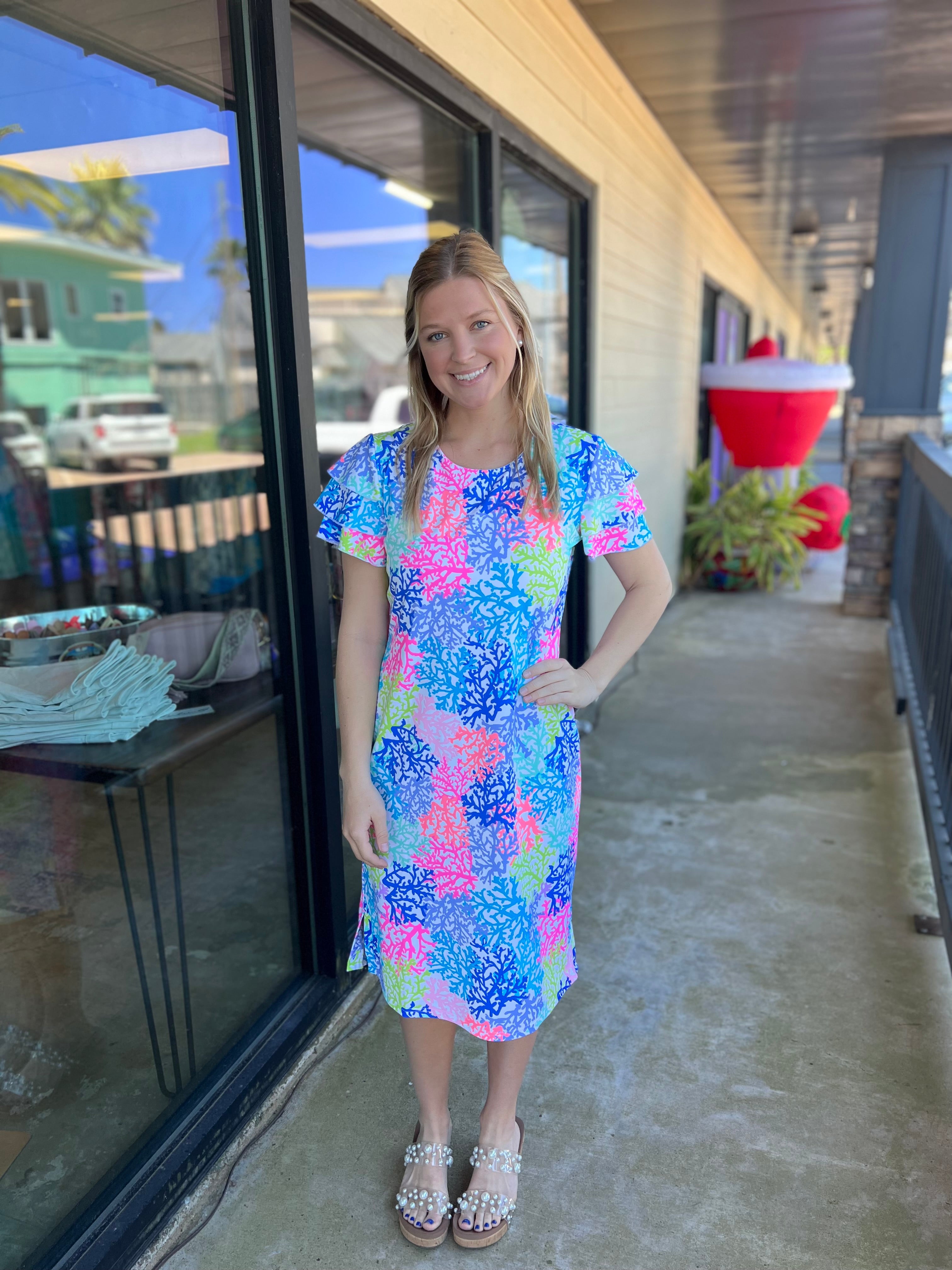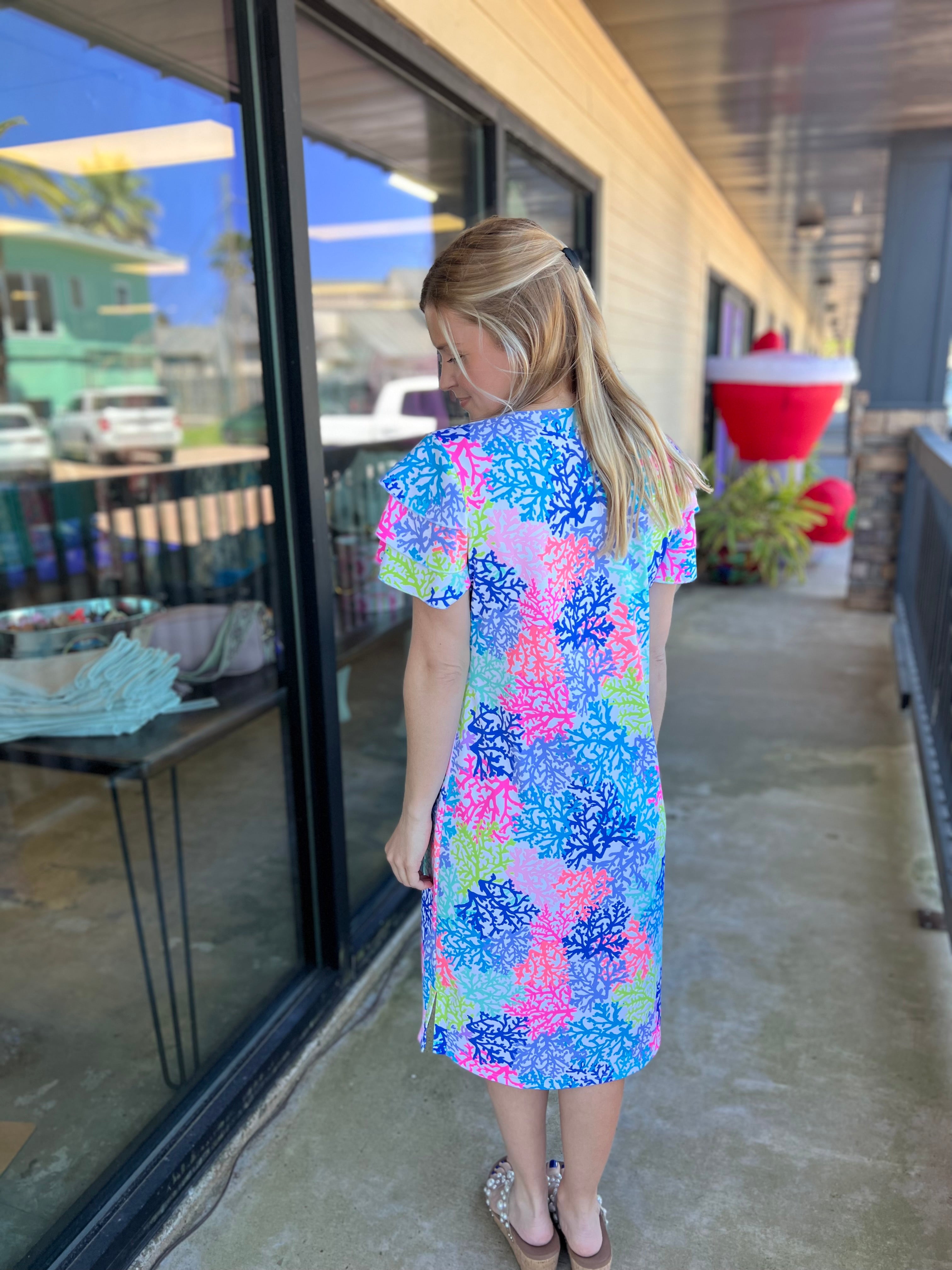 Colorful Filigree 42" Ruffle Sleeve Top
