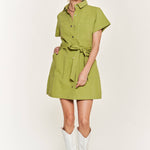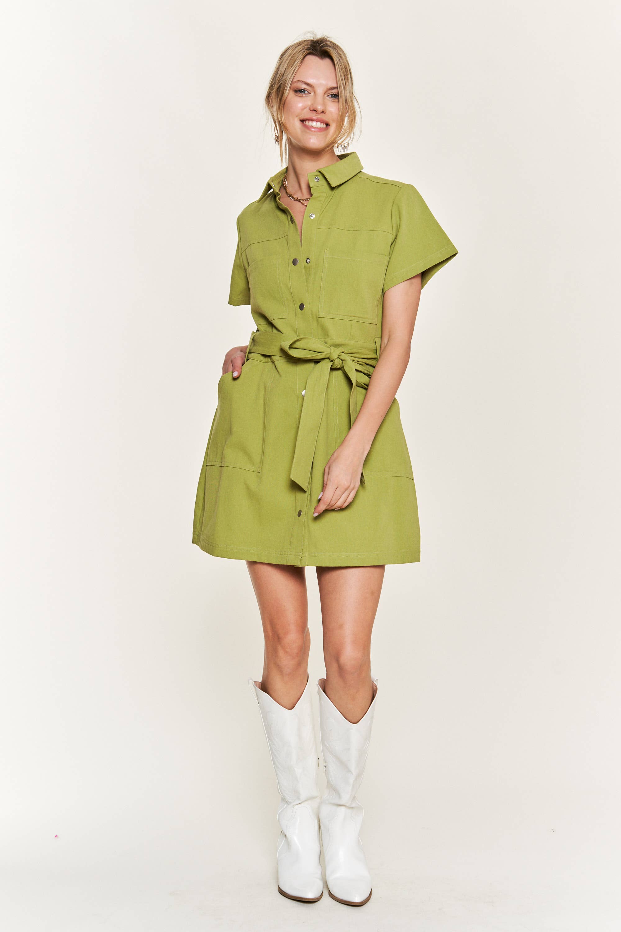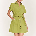 -Snapped button-down collared cotton dress -Belted -Front chest pockets & side pockets SIZE PREPACK S-M-L-XL /2-2-2-2 1XL-2XL-3XL/2-2-2