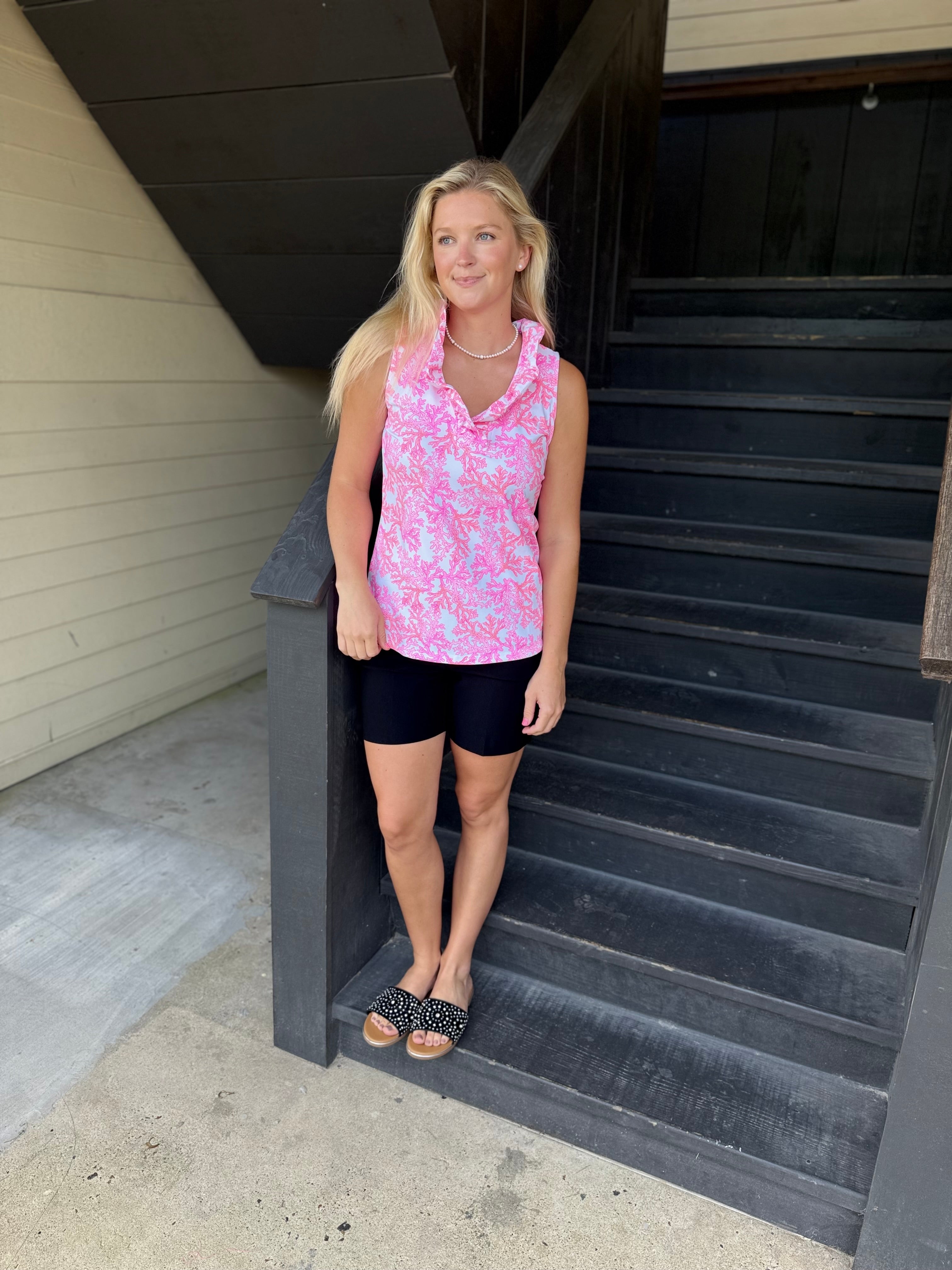 Ruffle V-Neck Coastal Pink Tank