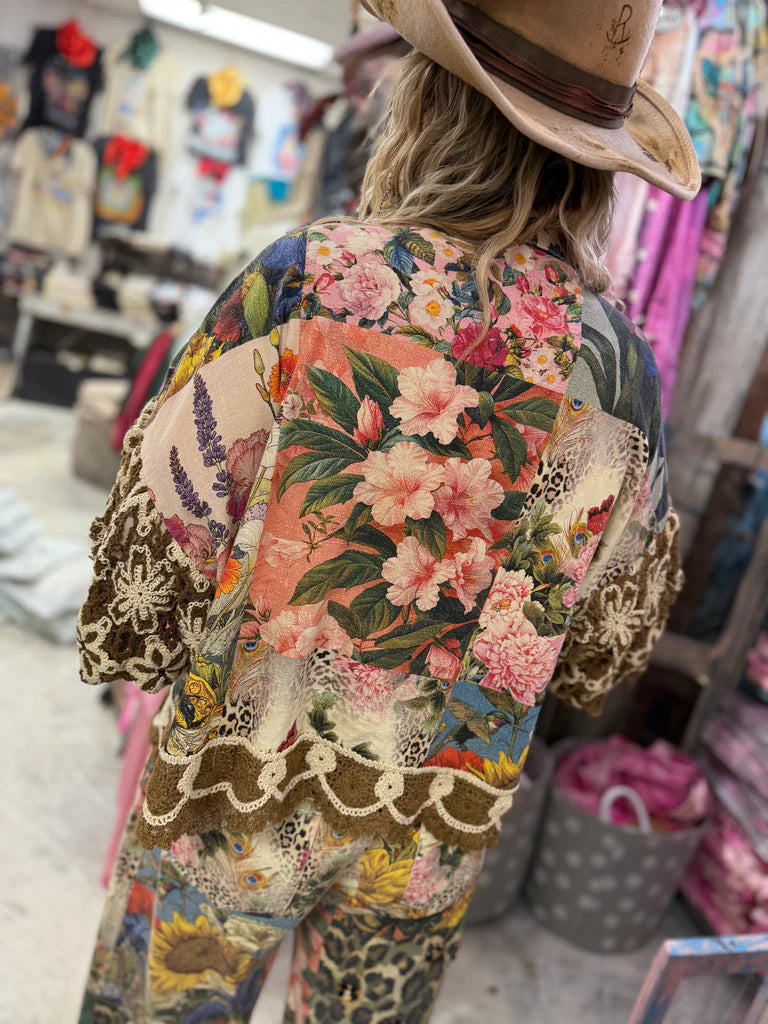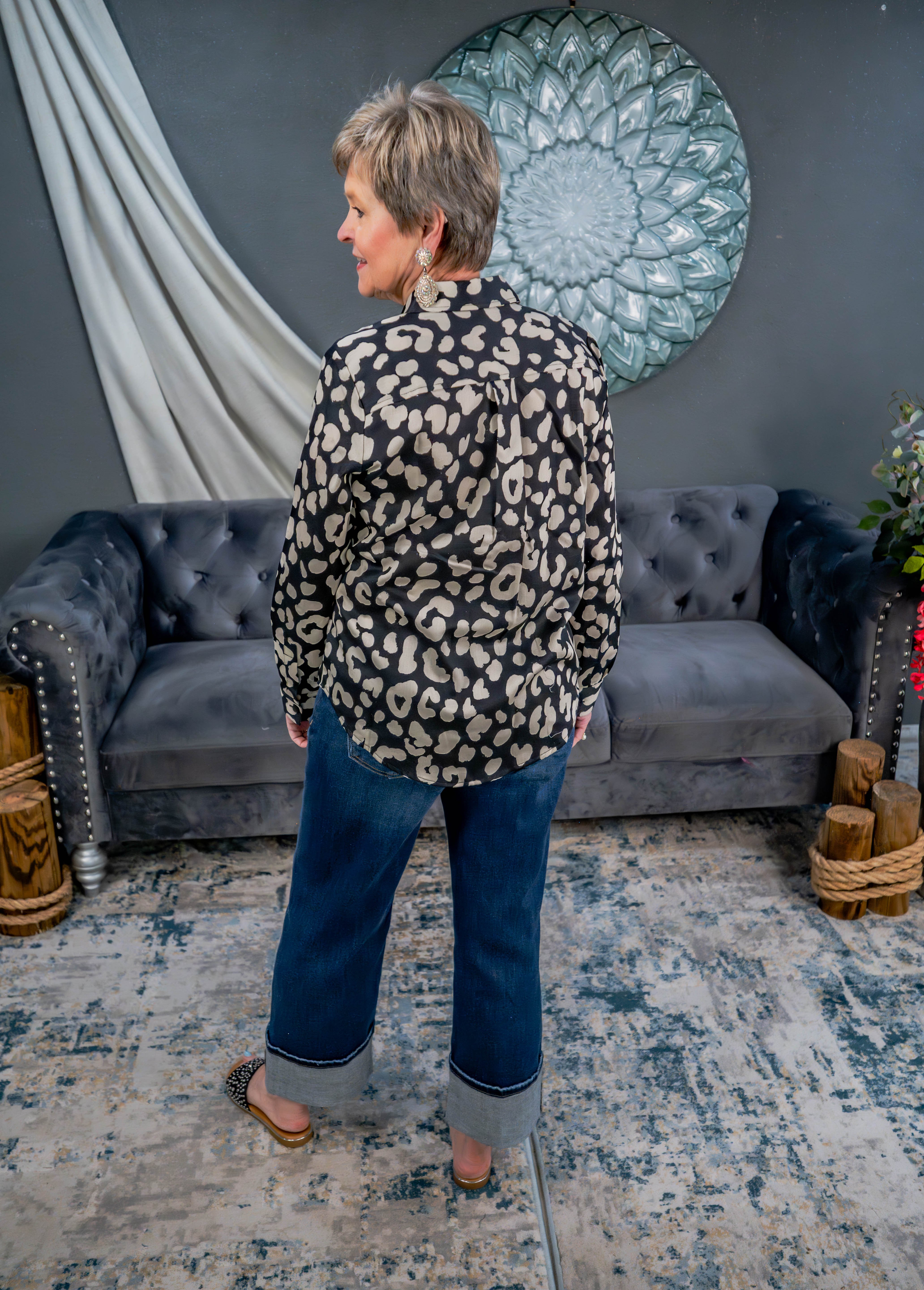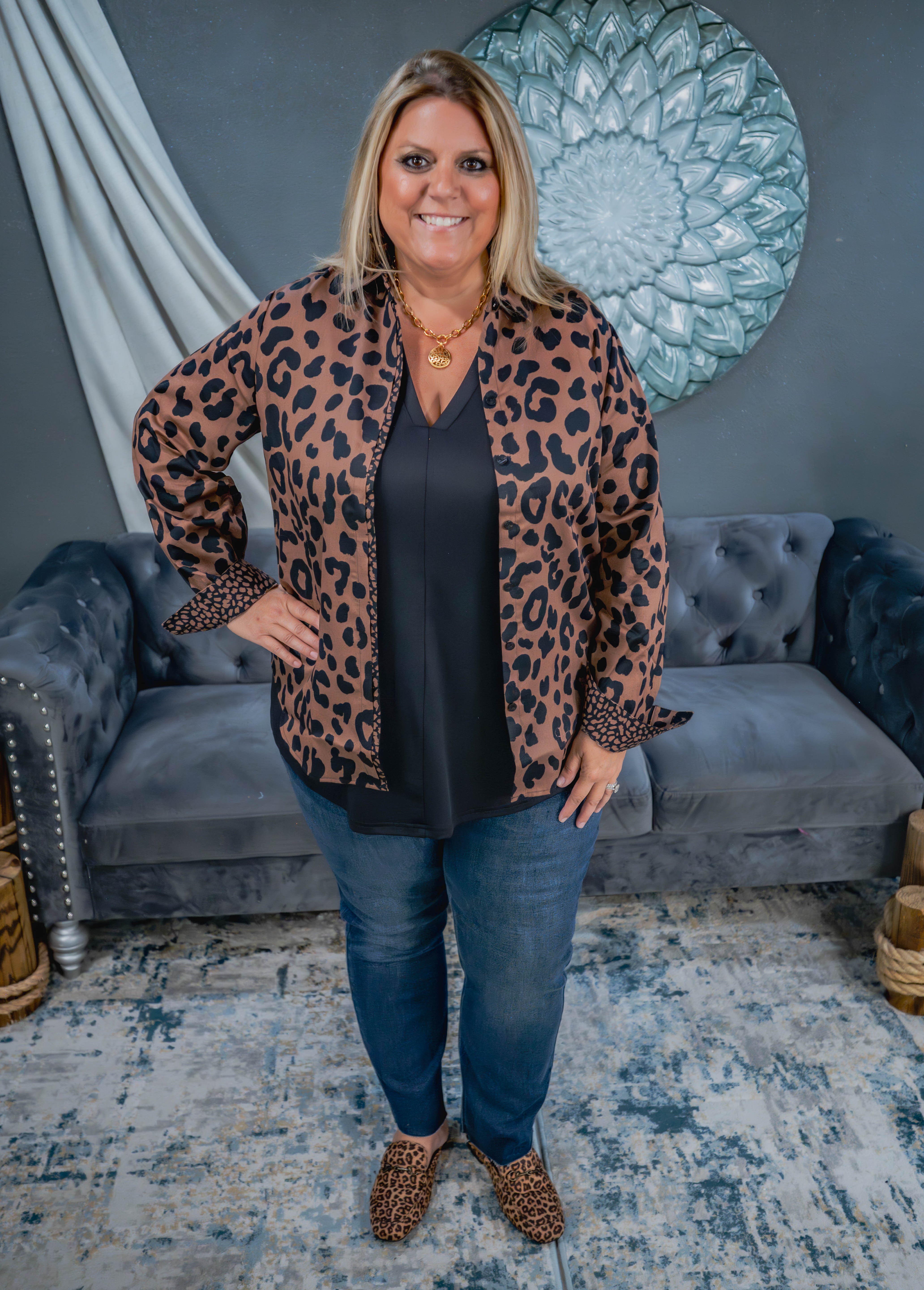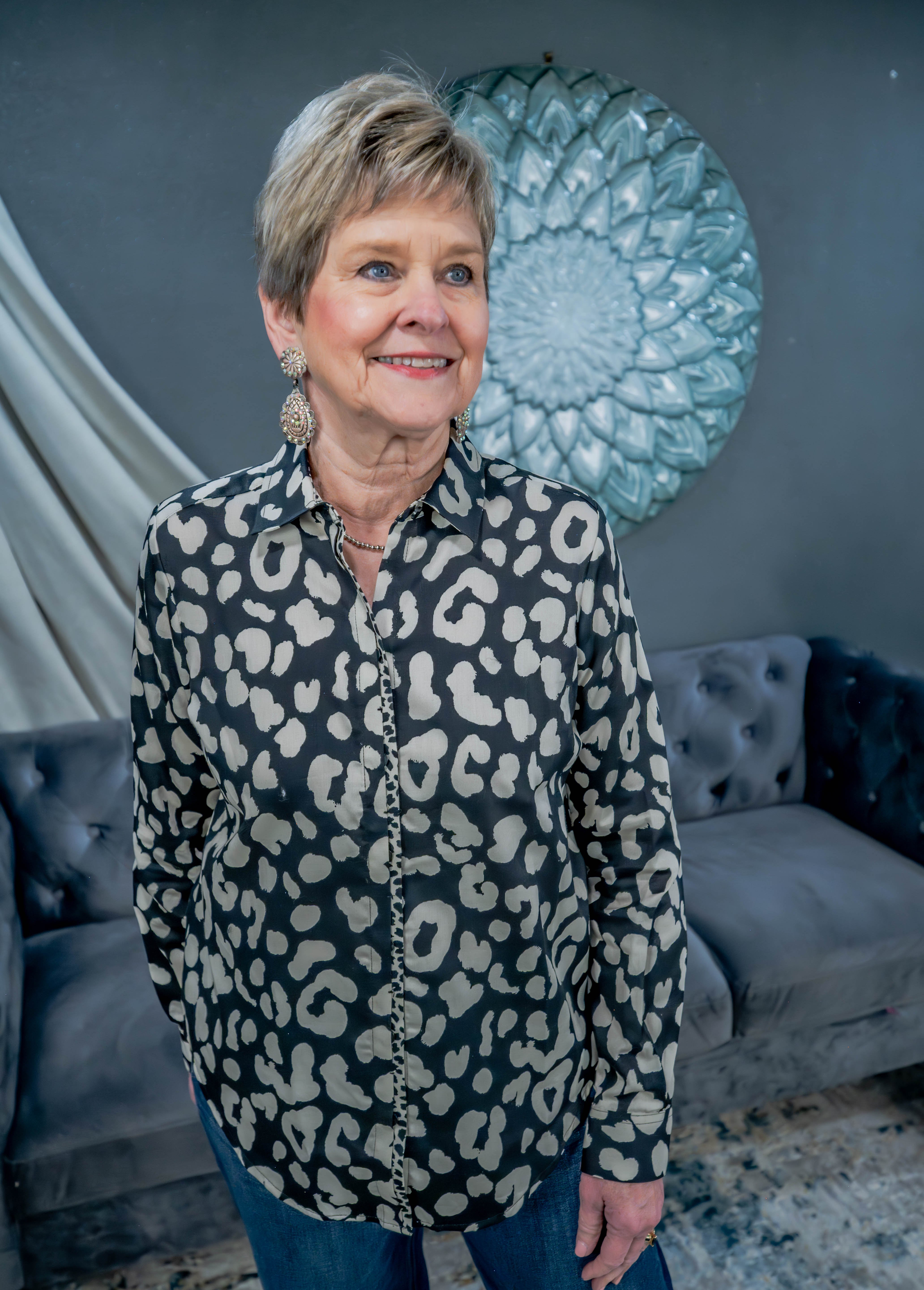 Leopard Foil Print Crew Neck Knitted Sweater Top