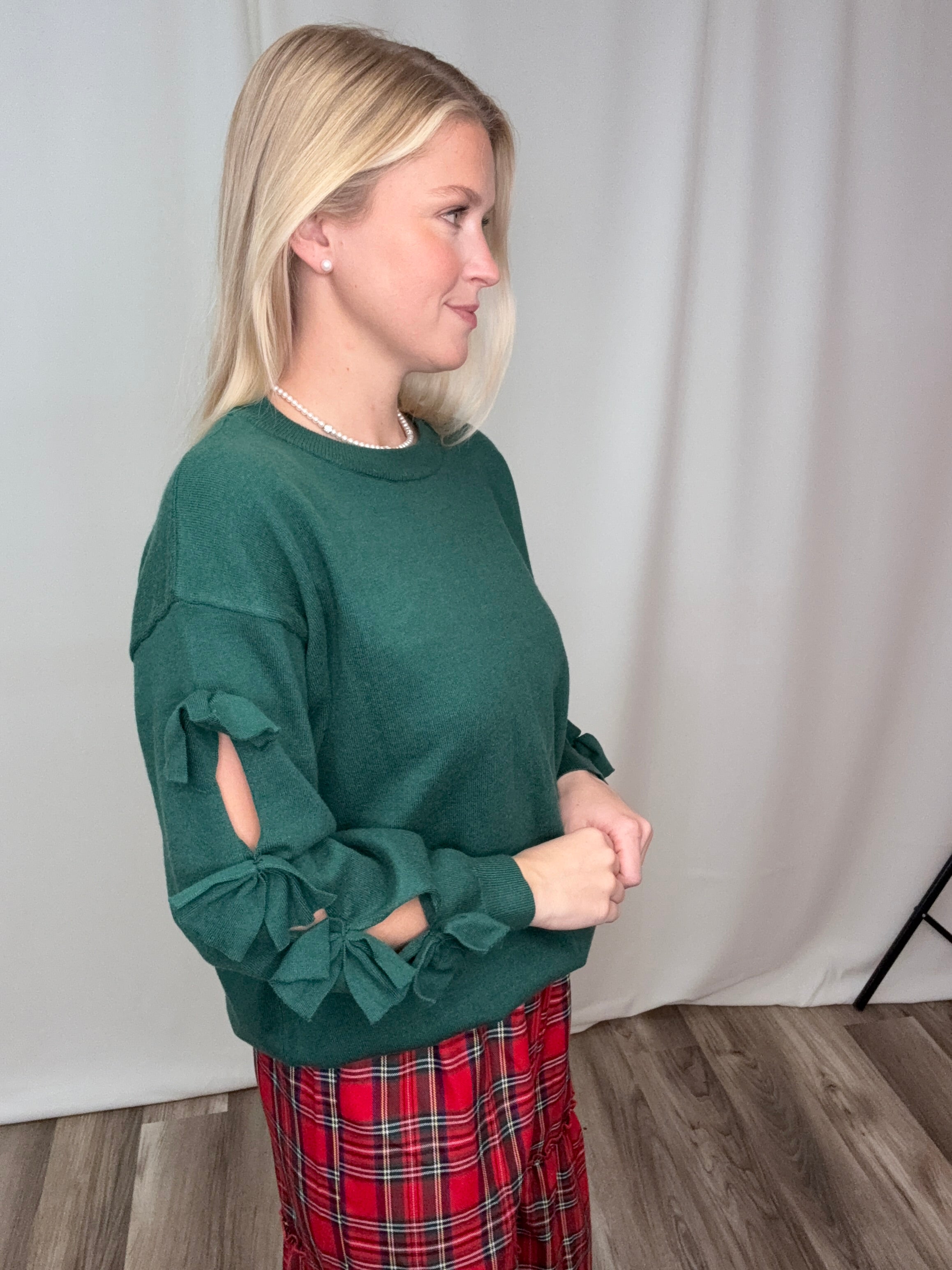 Bow Embellished Long-Sleeve Crew Neck Knit Sweater