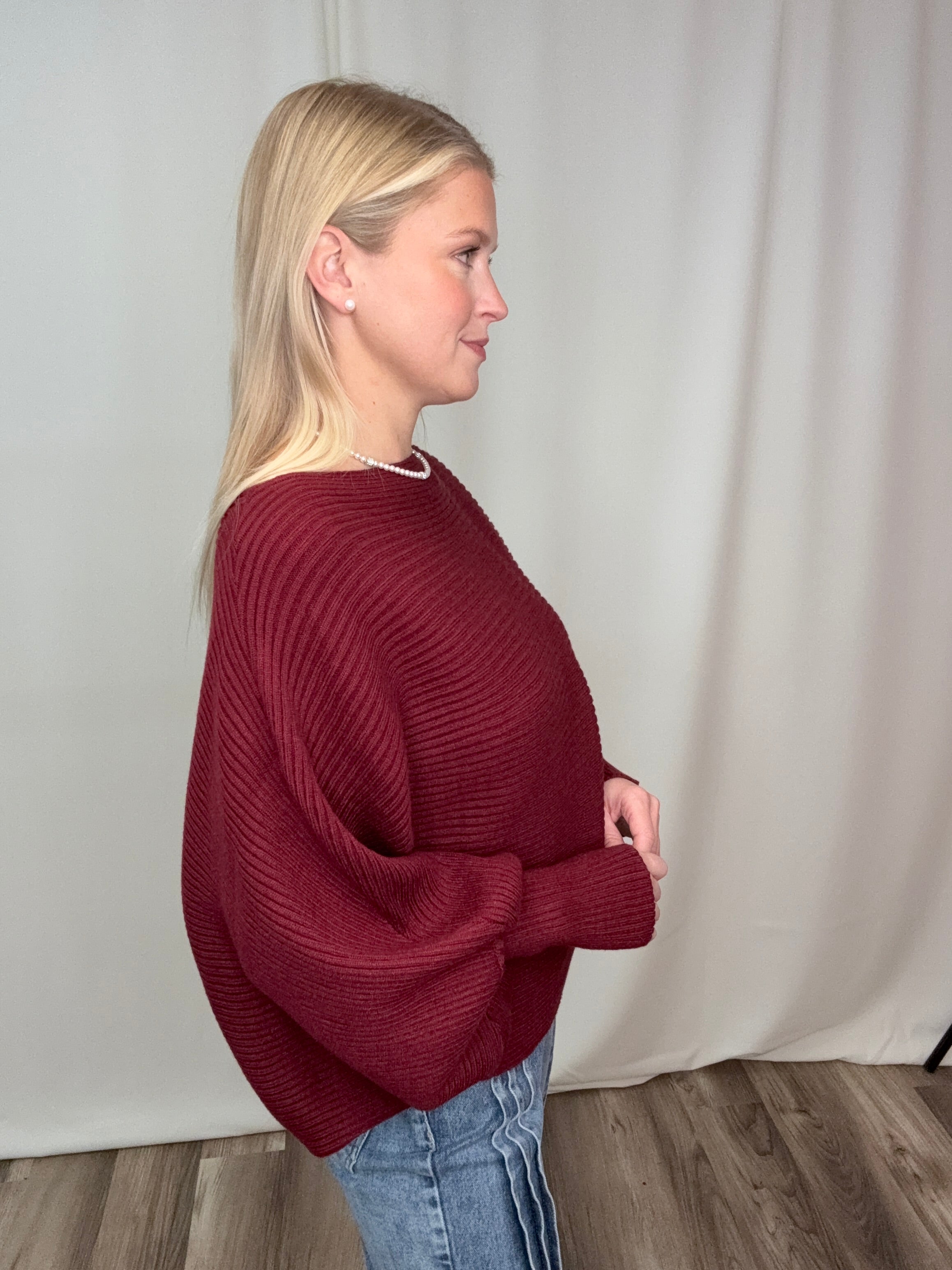 Boat Neck Elegant Ribbed Knitted Loose Sweater
