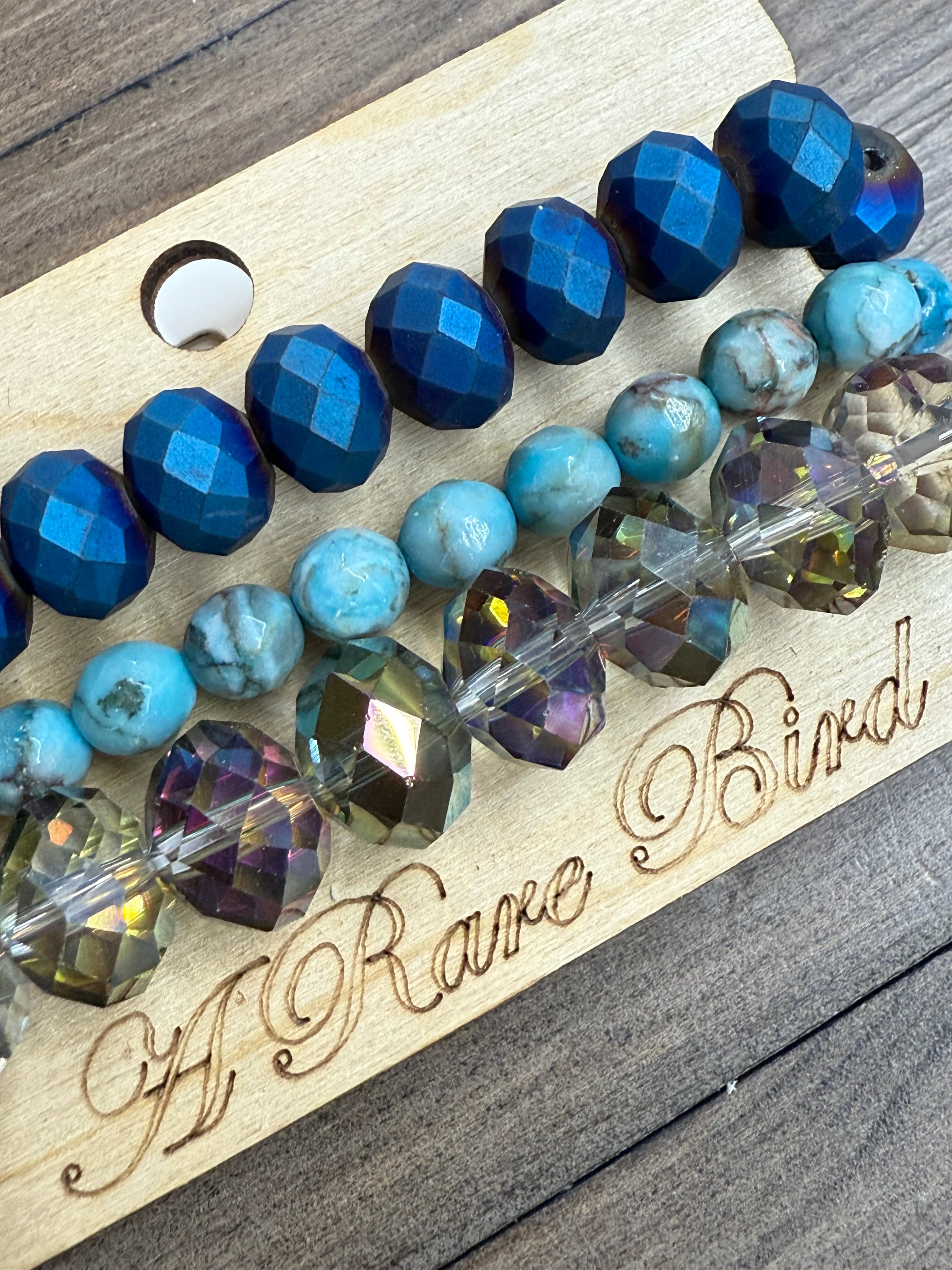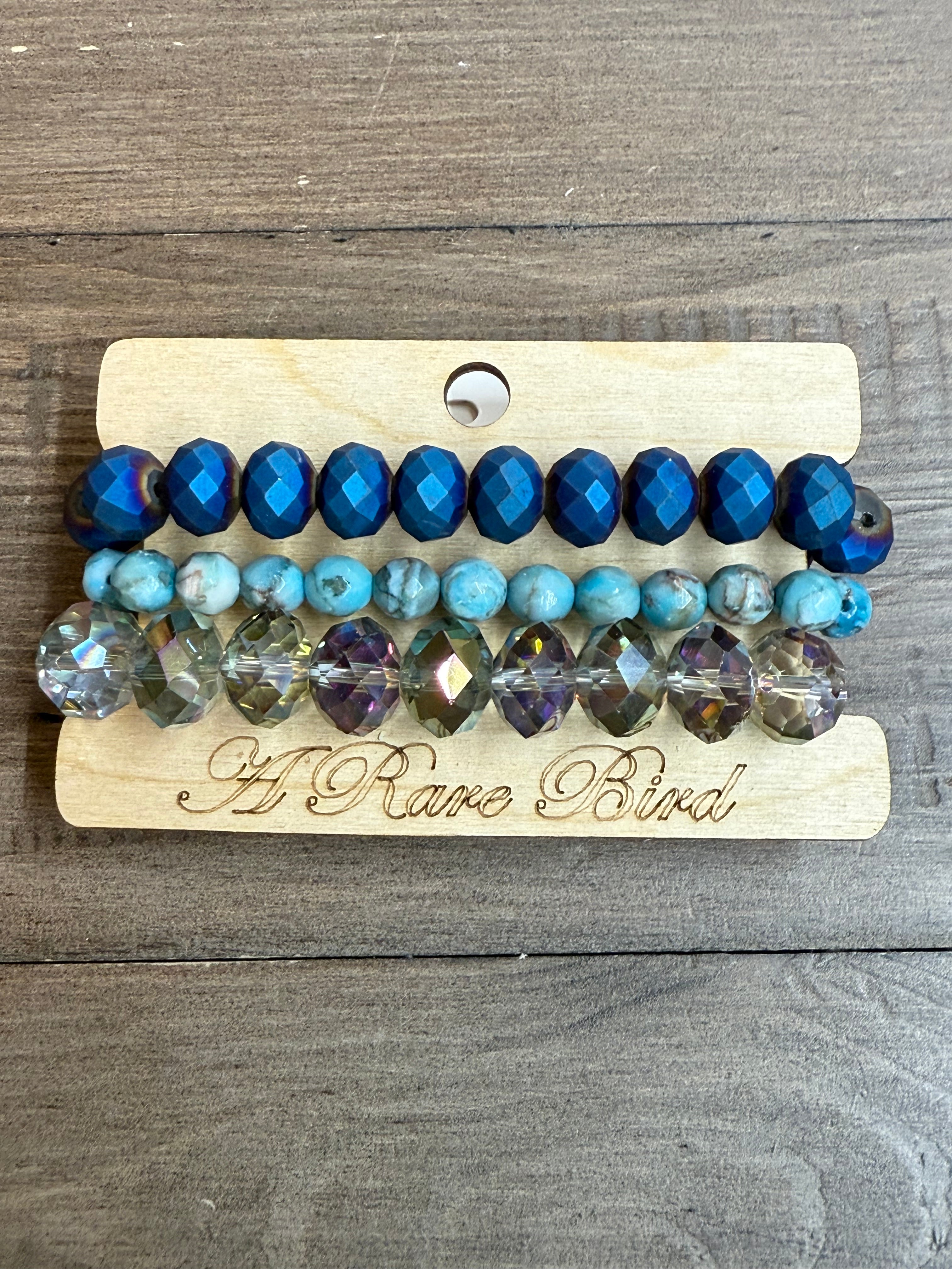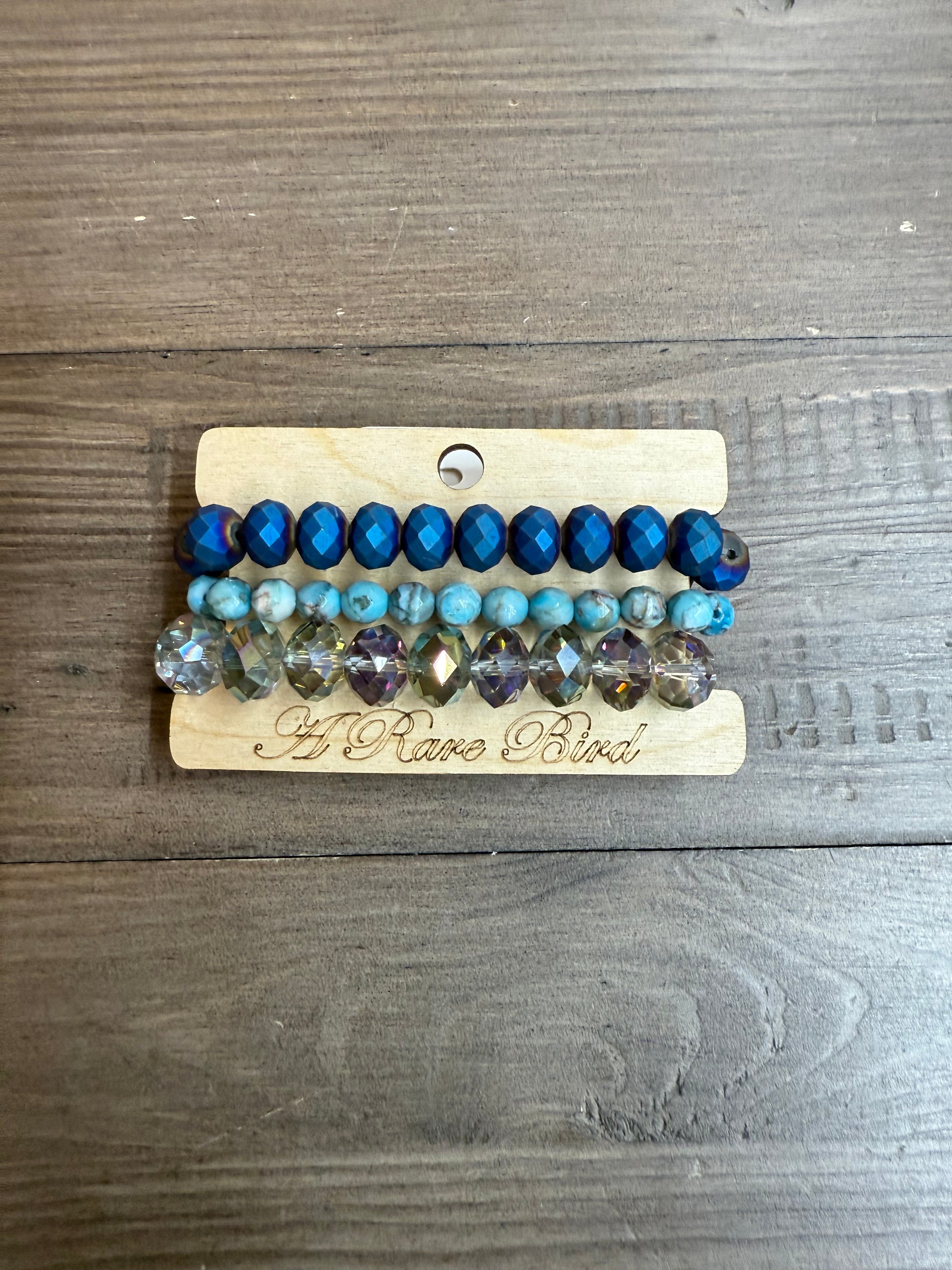 Add some serious sparkle to your wrist with this gorgeous trio blue beads and crystal bracelets. Whether you're dressing up for a night out or just want to level up your everyday look, this beauty delivers the kind of eye-catching charm that makes people ask where you got it. It's the perfect pick for anyone who believes jewelry should be fun, fabulous, and totally unapologetic about standing out from the crowd.