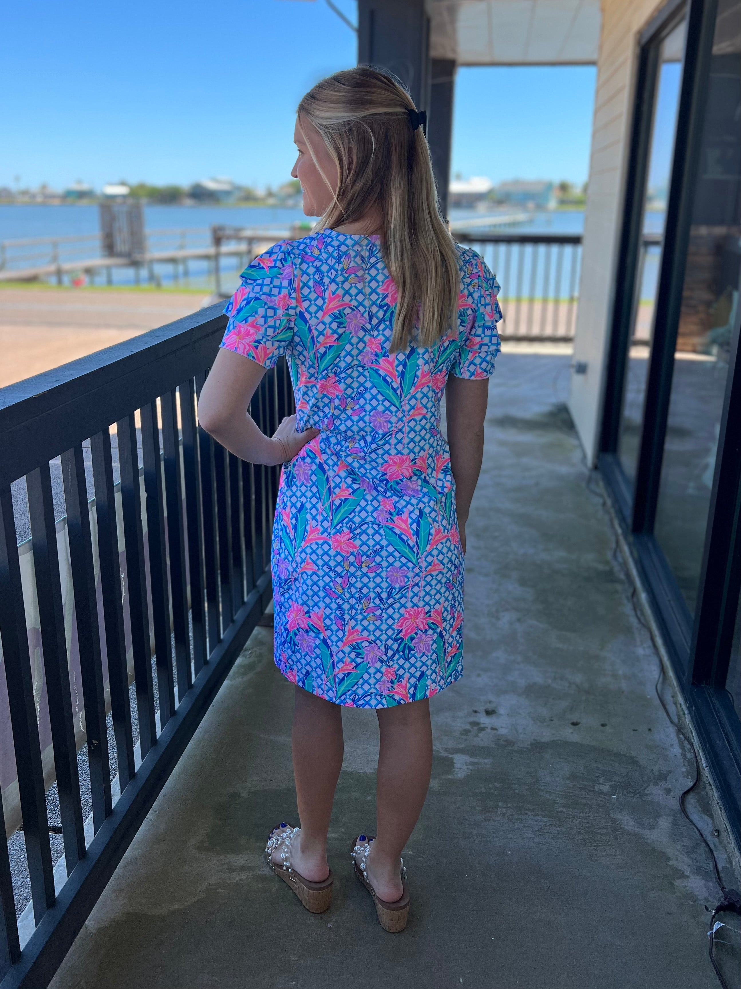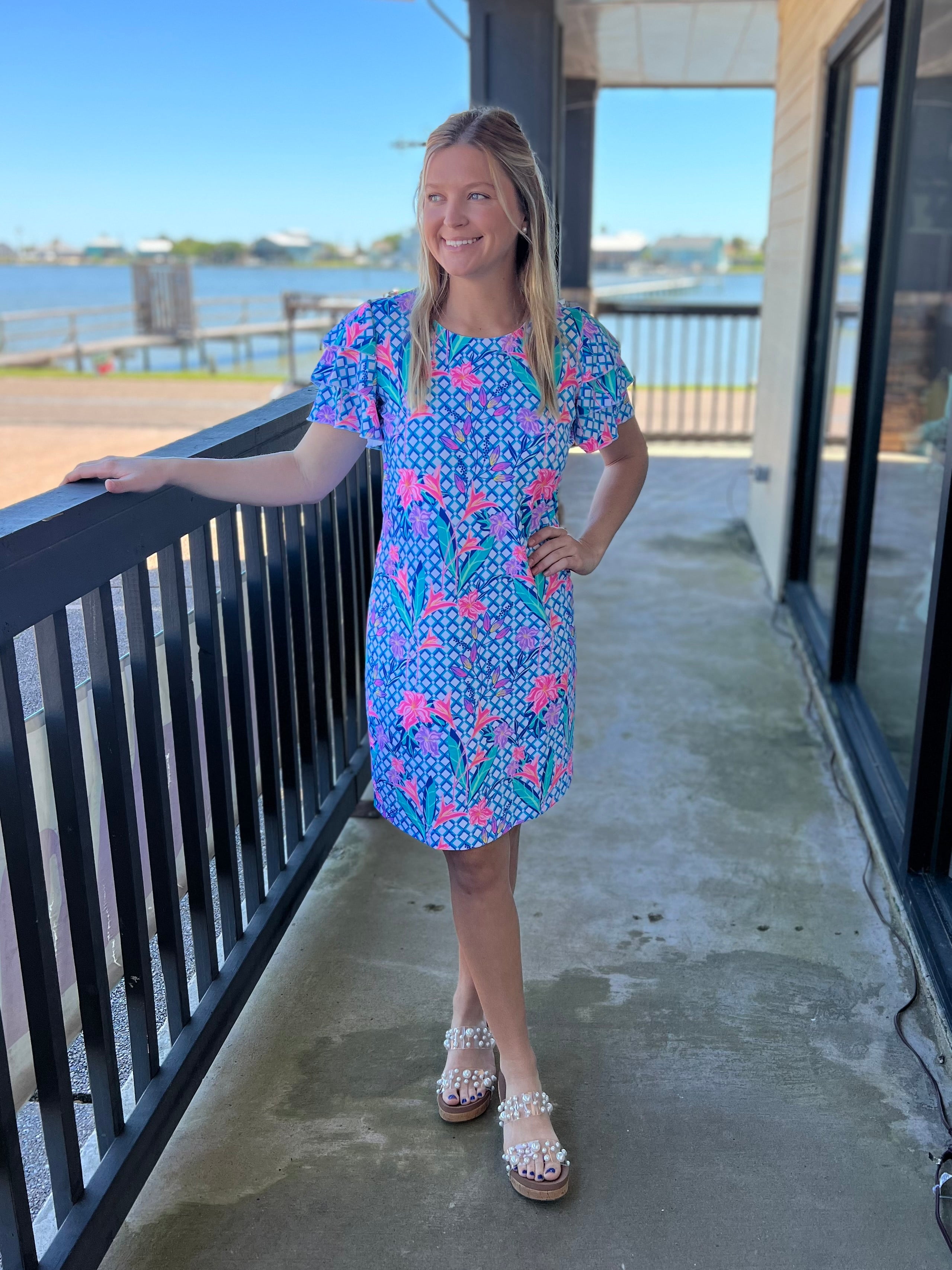 Blue Floral Cha Cha Sleeve Dress