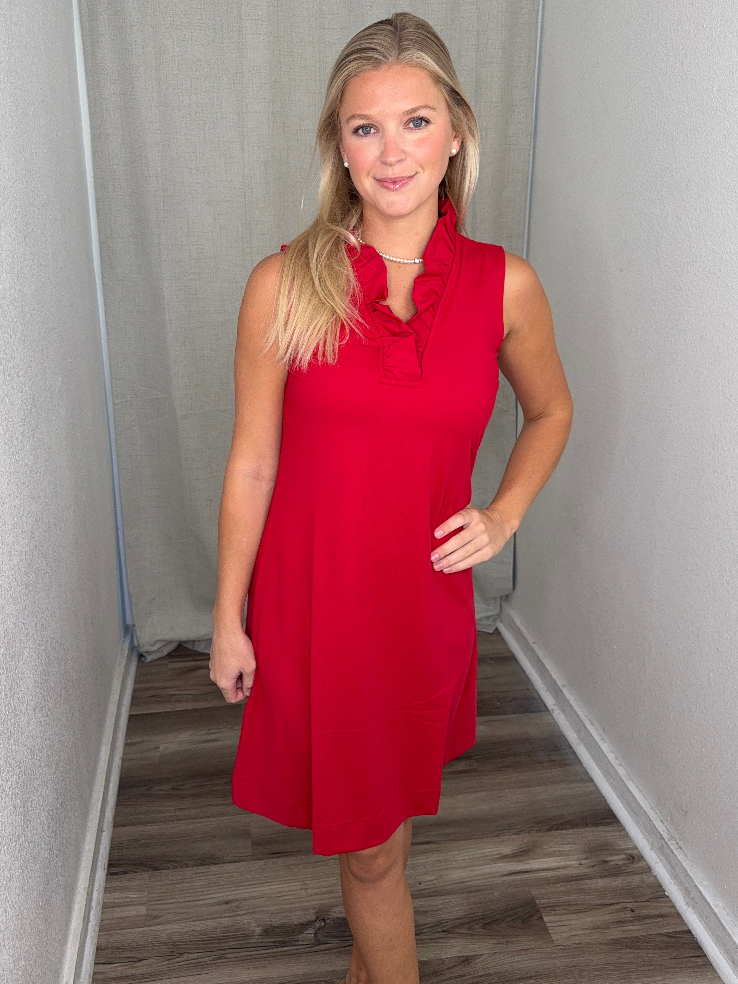 The Lulu B ruffle v-neck collar dress has become a beloved choice for many! Its flawless fit flatters all body types, while offering a 50+ UPF rating and a refreshing cooling effect. This dress truly has it all!