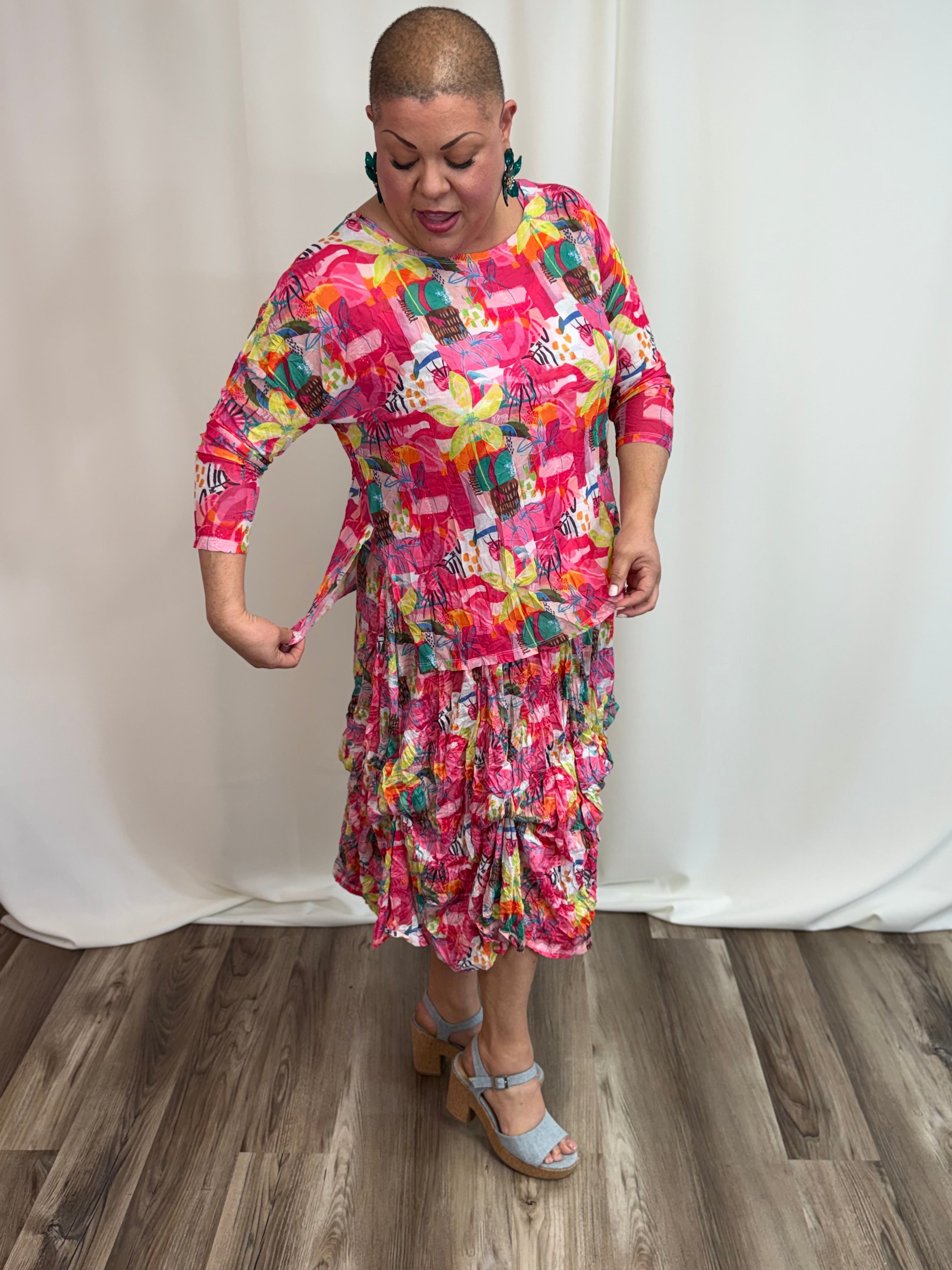 Elevate any outfit with this versatile mesh overlay top. Designed to layer beautifully over the Island Escape Bustle Dress or worn solo, it adds instant sophistication and color to your wardrobe. The flowing silhouette flatters all body types while remaining comfortable for any occasion—from special events to casual everyday wear. Perfect for spring and summer styling.
