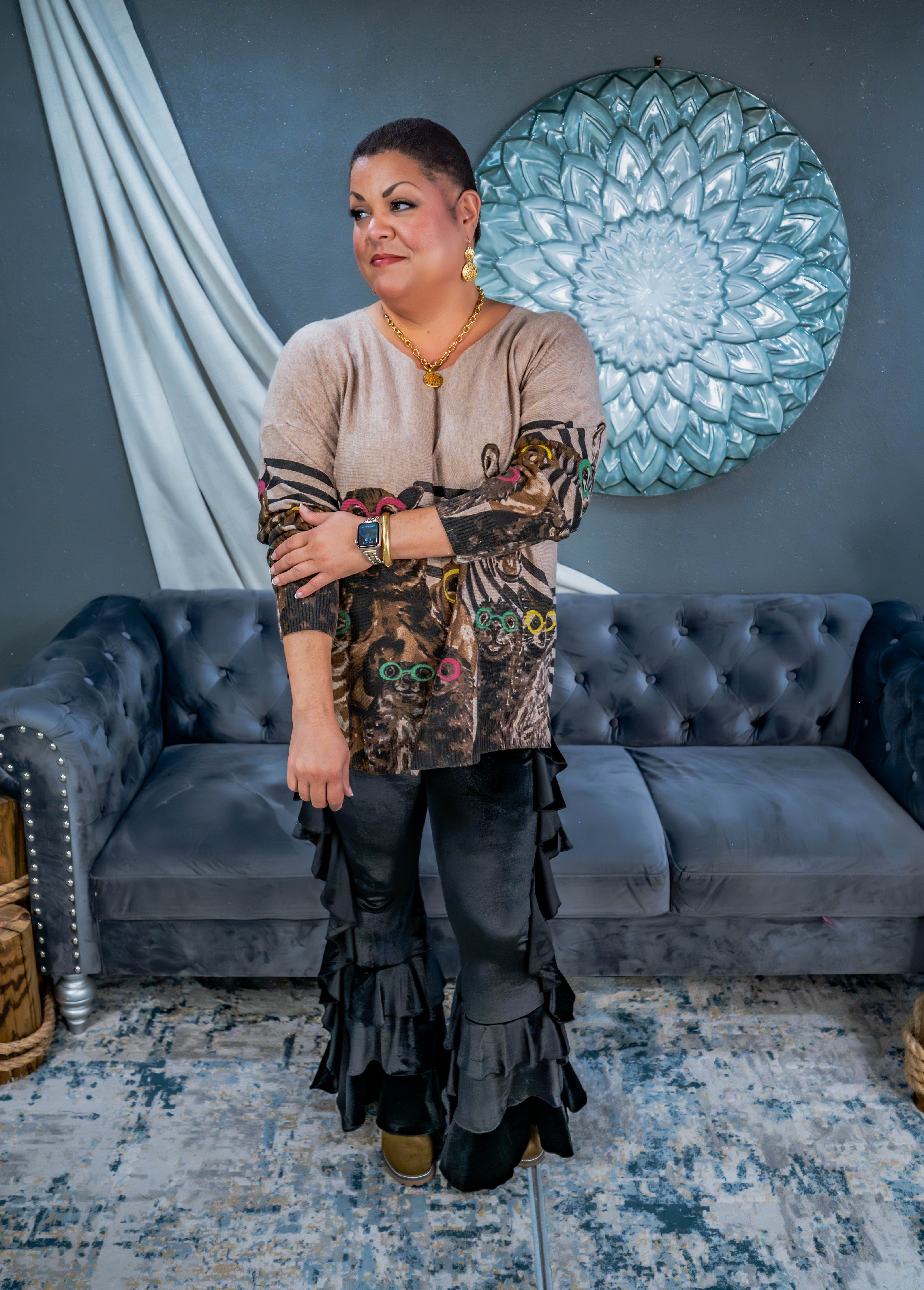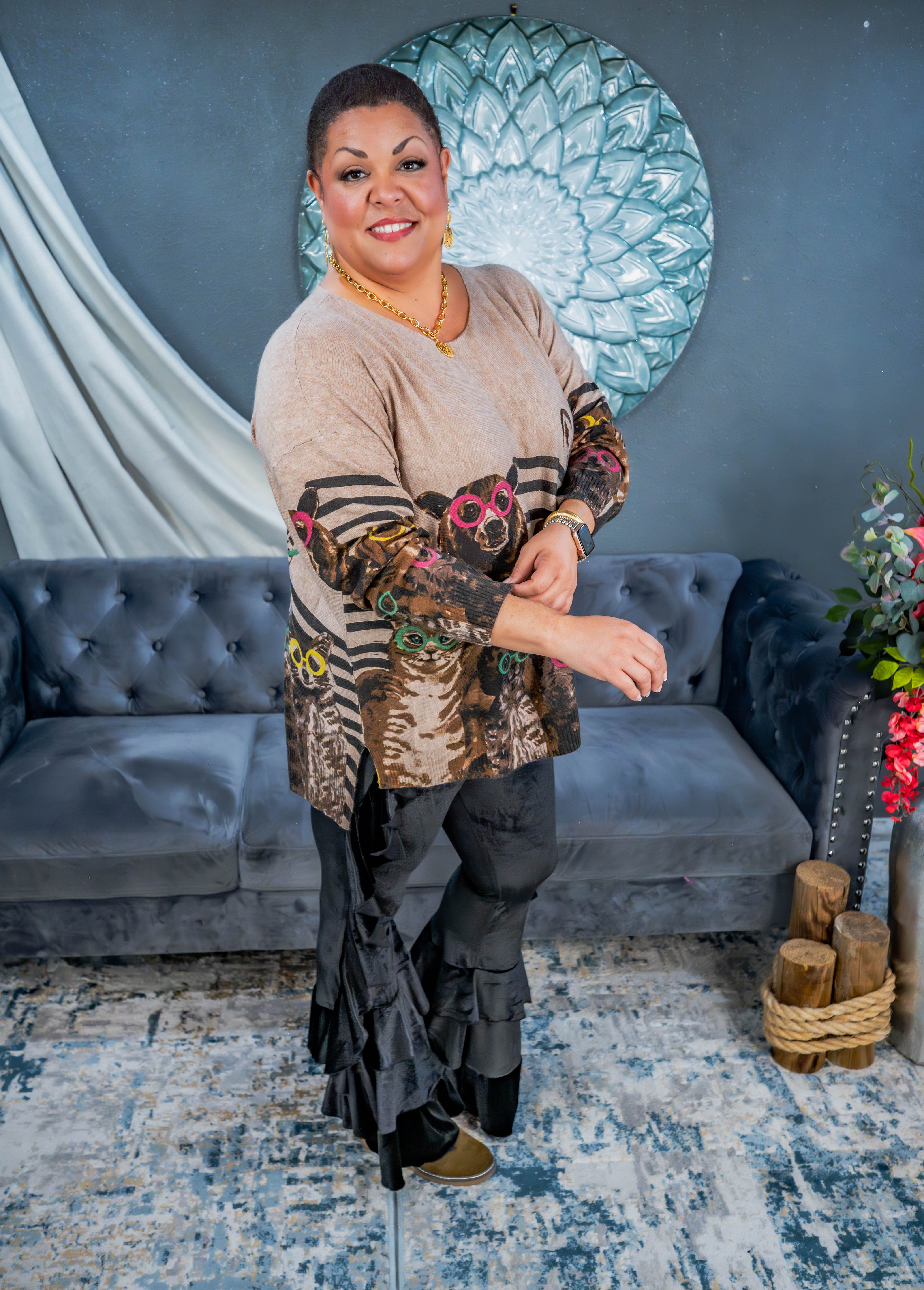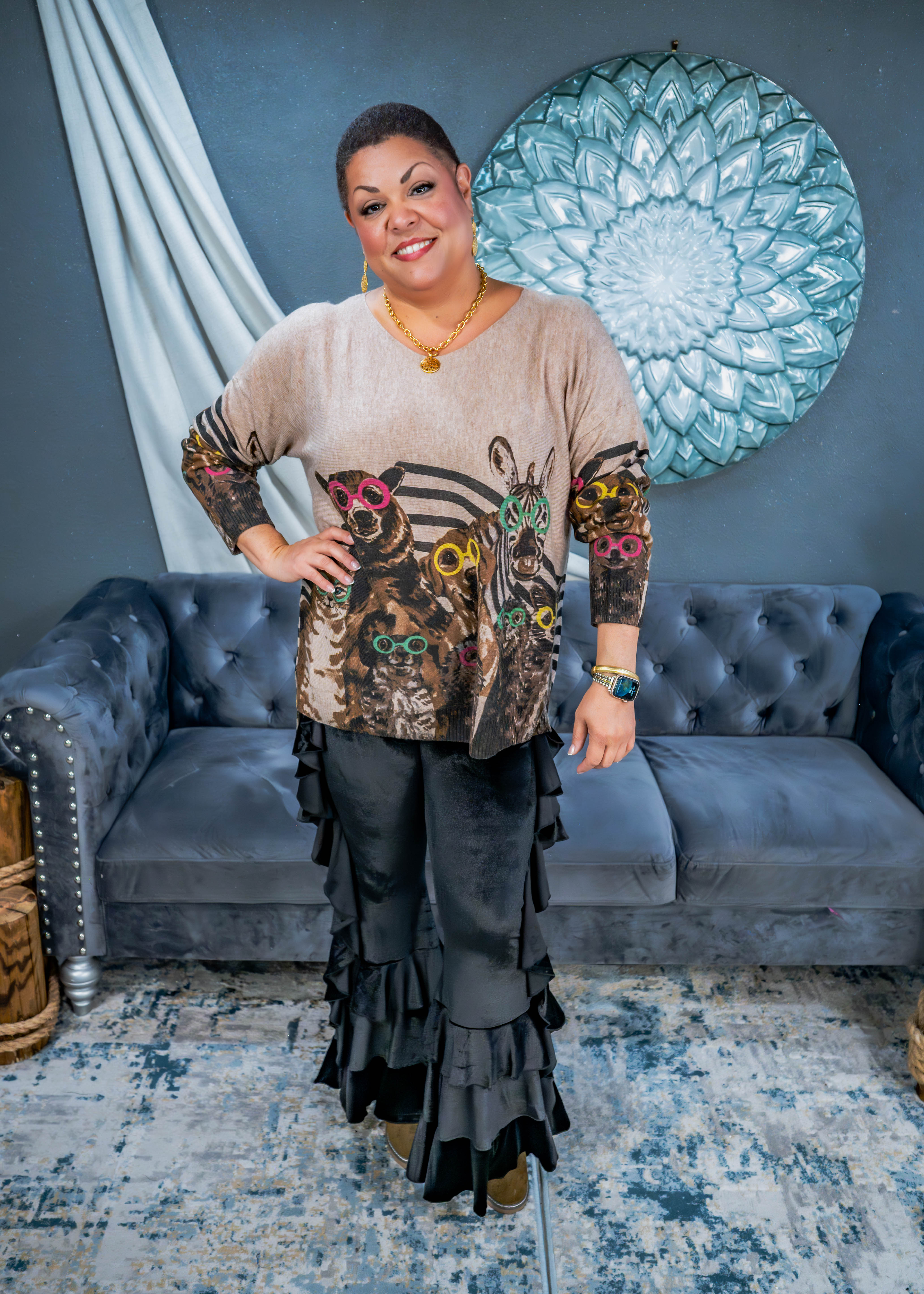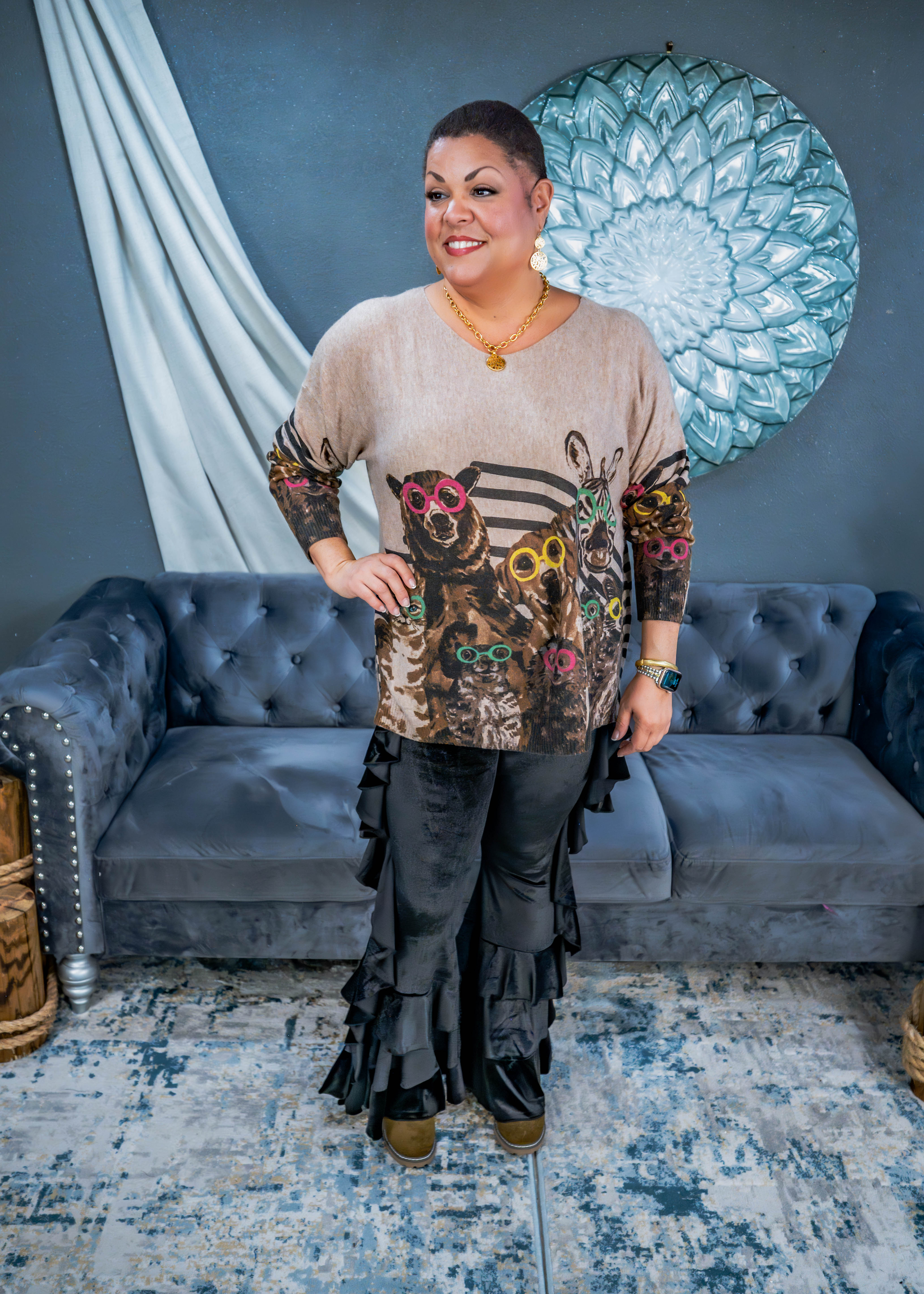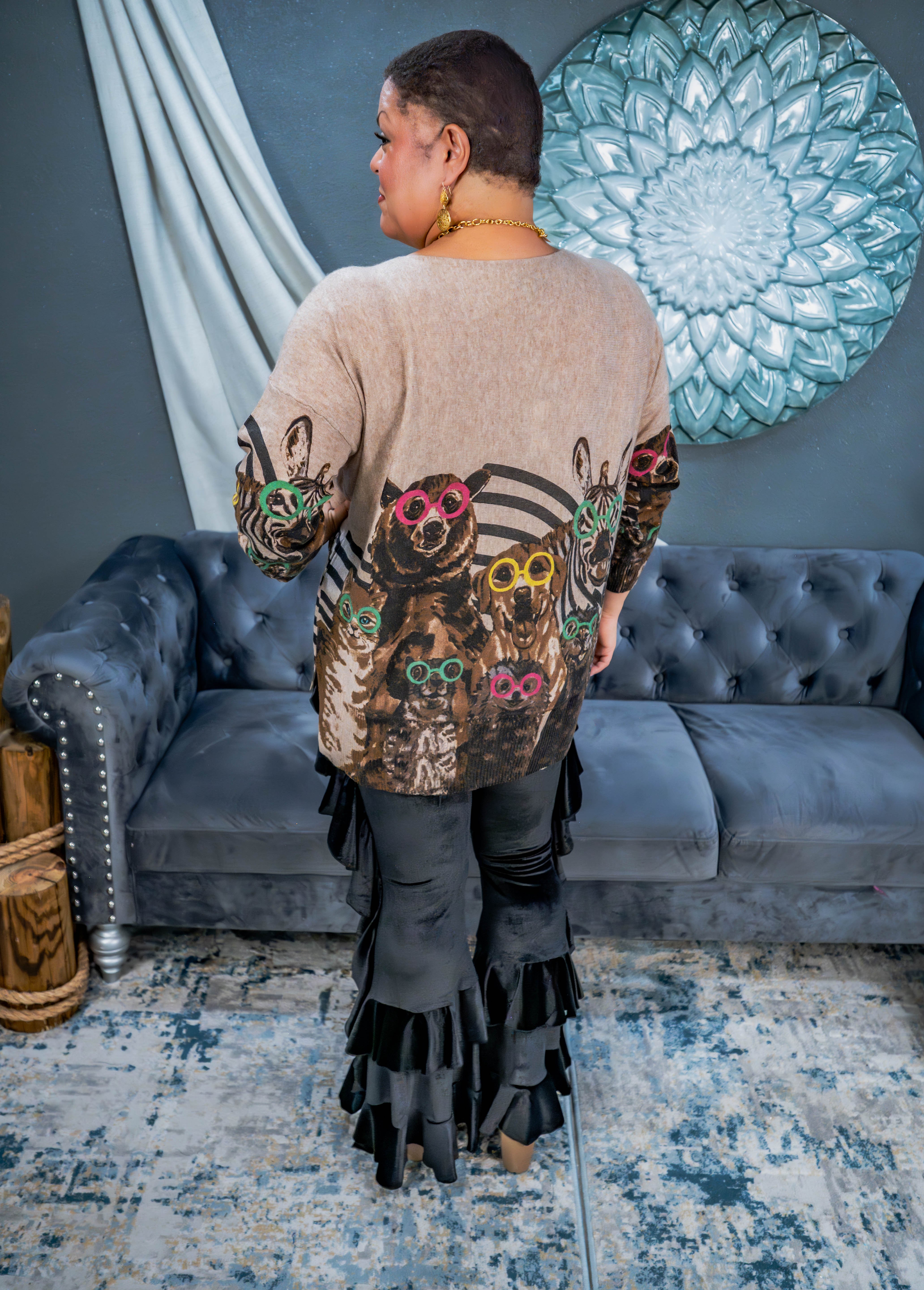 For those who adore animals, this sweater is a must-have! It's cozy, flattering, and covered in the cutest animal prints. Perfect to wear with jeans or leggings for a fun, casual look.