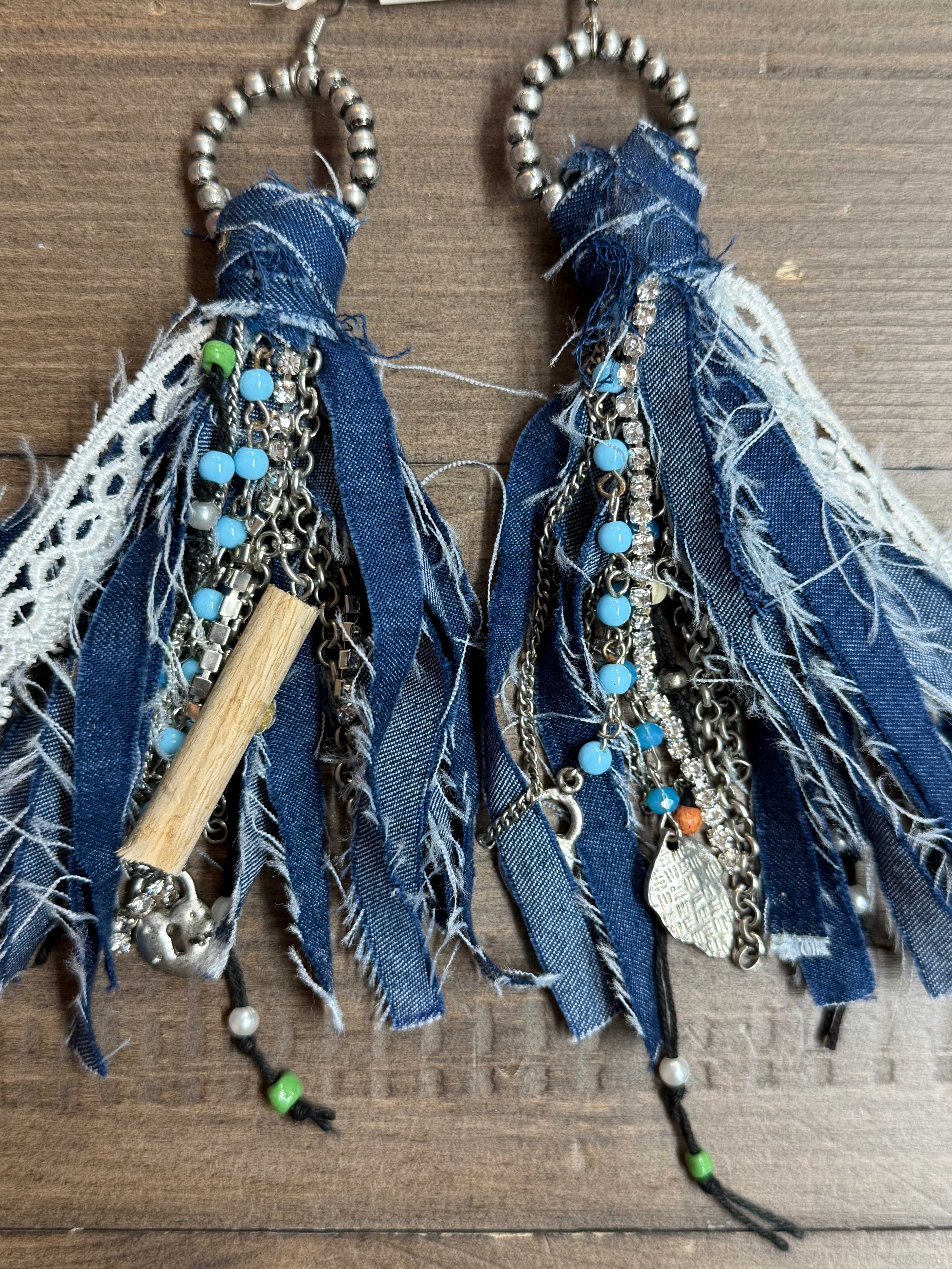 Elevate your everyday look with these rustic rag denim earrings—the perfect accessory for adding a touch of grace to any outfit, whether you're heading to brunch or a special celebration. Versatile, timeless, and undeniably stylish.