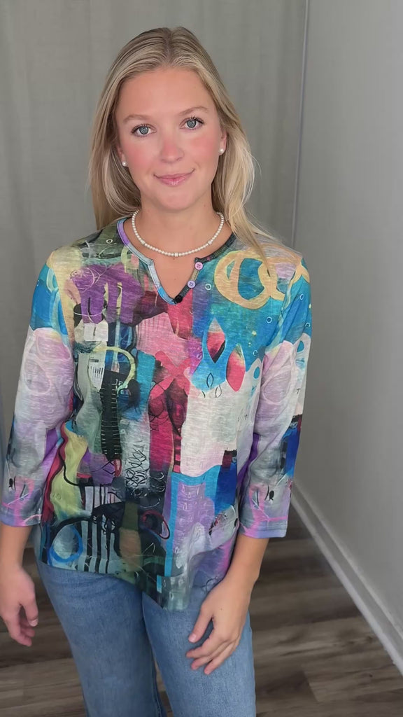 The Shana Top is the perfect addition to your wardrobe! It features a beautiful color pattern that makes it fun to pair with a variety of pants, skirts and accessories for an incredible outfit. You don't want to miss out on this piece that's sure to get people talking!