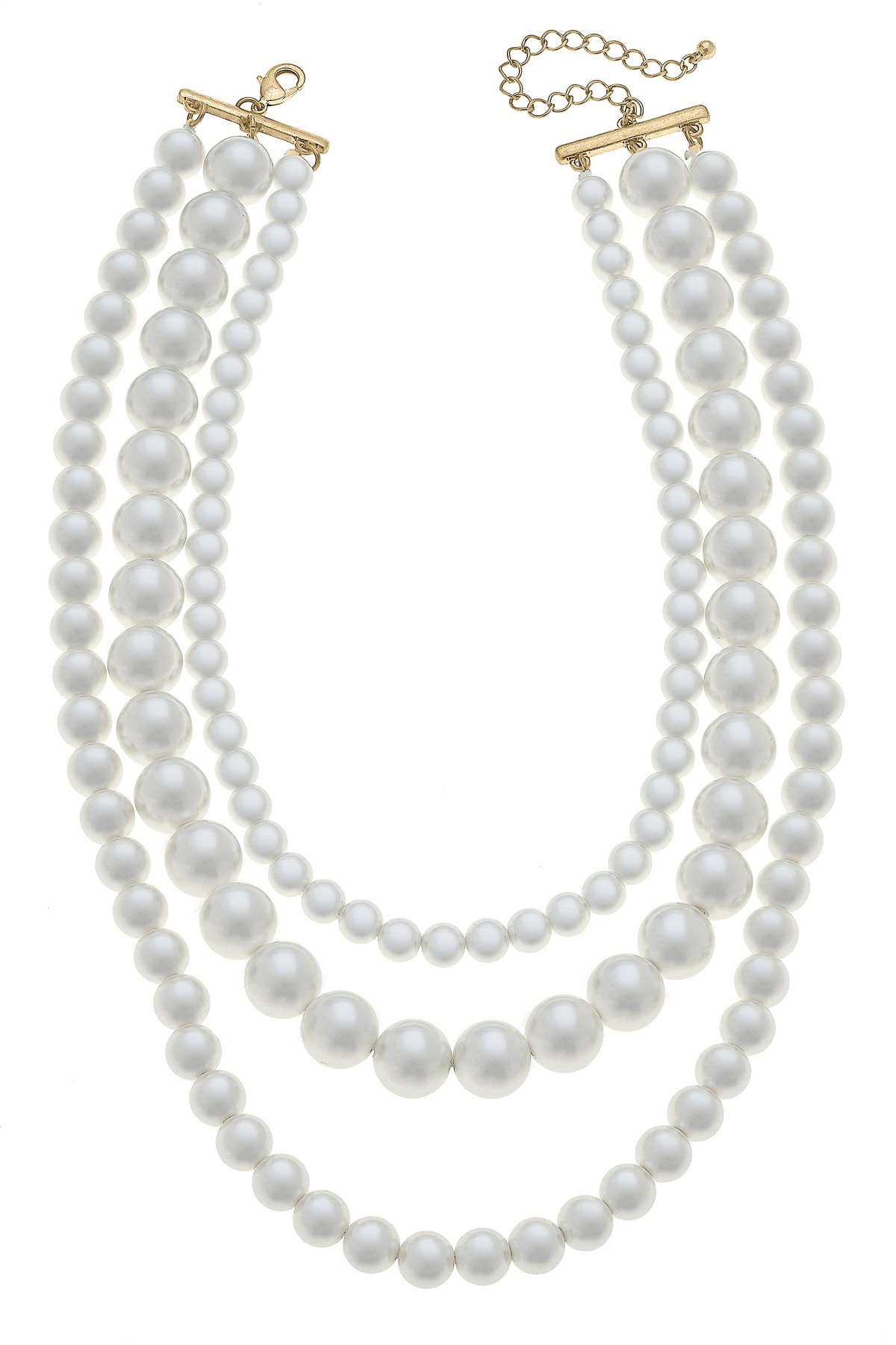 Betty 3-Row Classic Pearl Necklace in Ivory