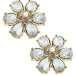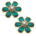 Brooke Rhinestone & Pearl Flower Stud Earrings