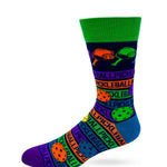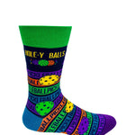 Men's pickleball novelty crew socks with saying "Hole-y Balls." Stylish and comfortable! Fits men's shoe size 7 to 12. 80% Cotton, 15% Nylon, 5% Spandex. Easy Care - Machine Wash. Item # SK1076