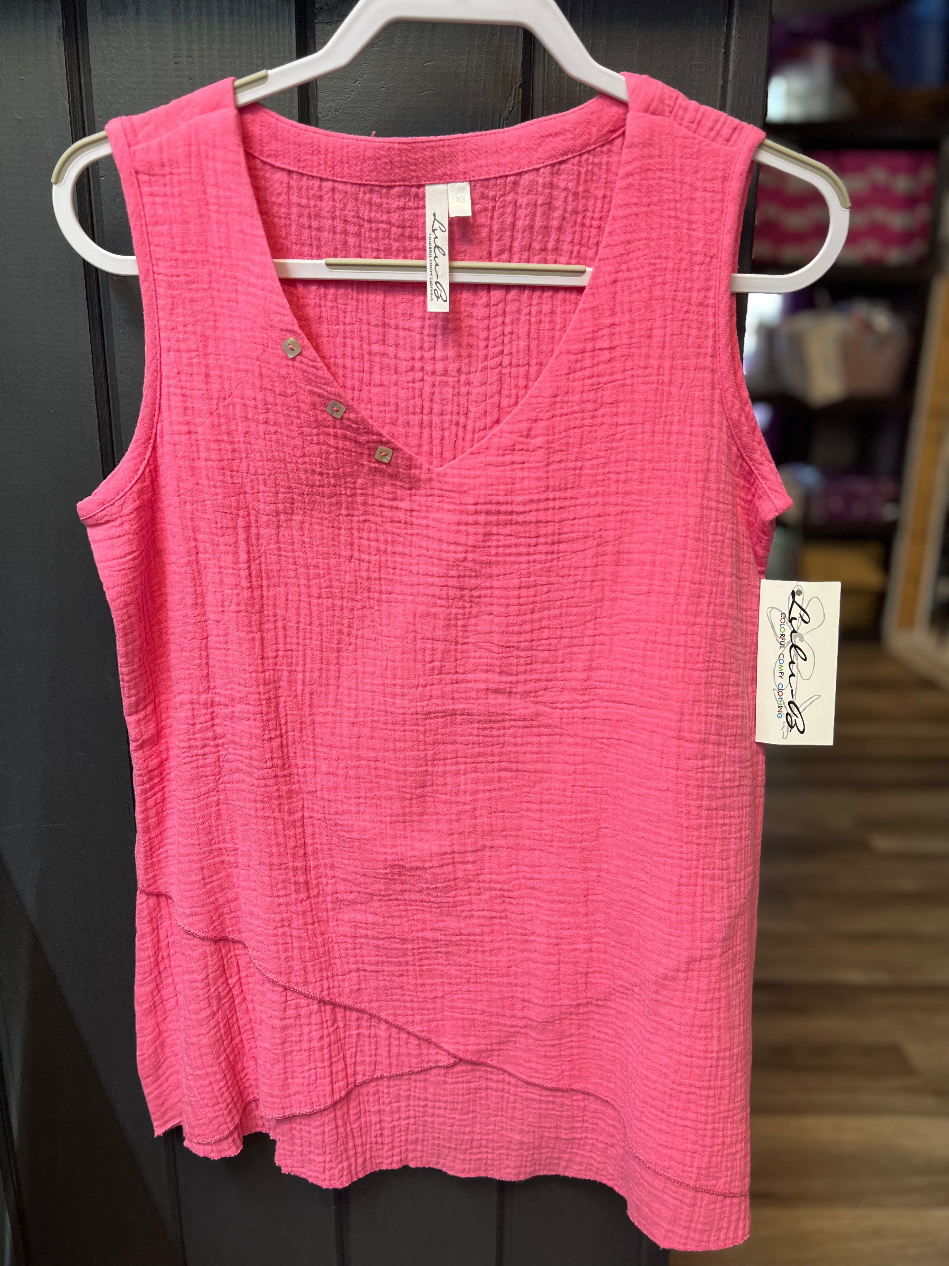 Seaglass Aqua tank with Asymmetrical hem and a cotton material.