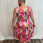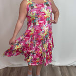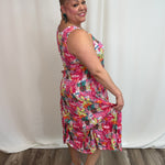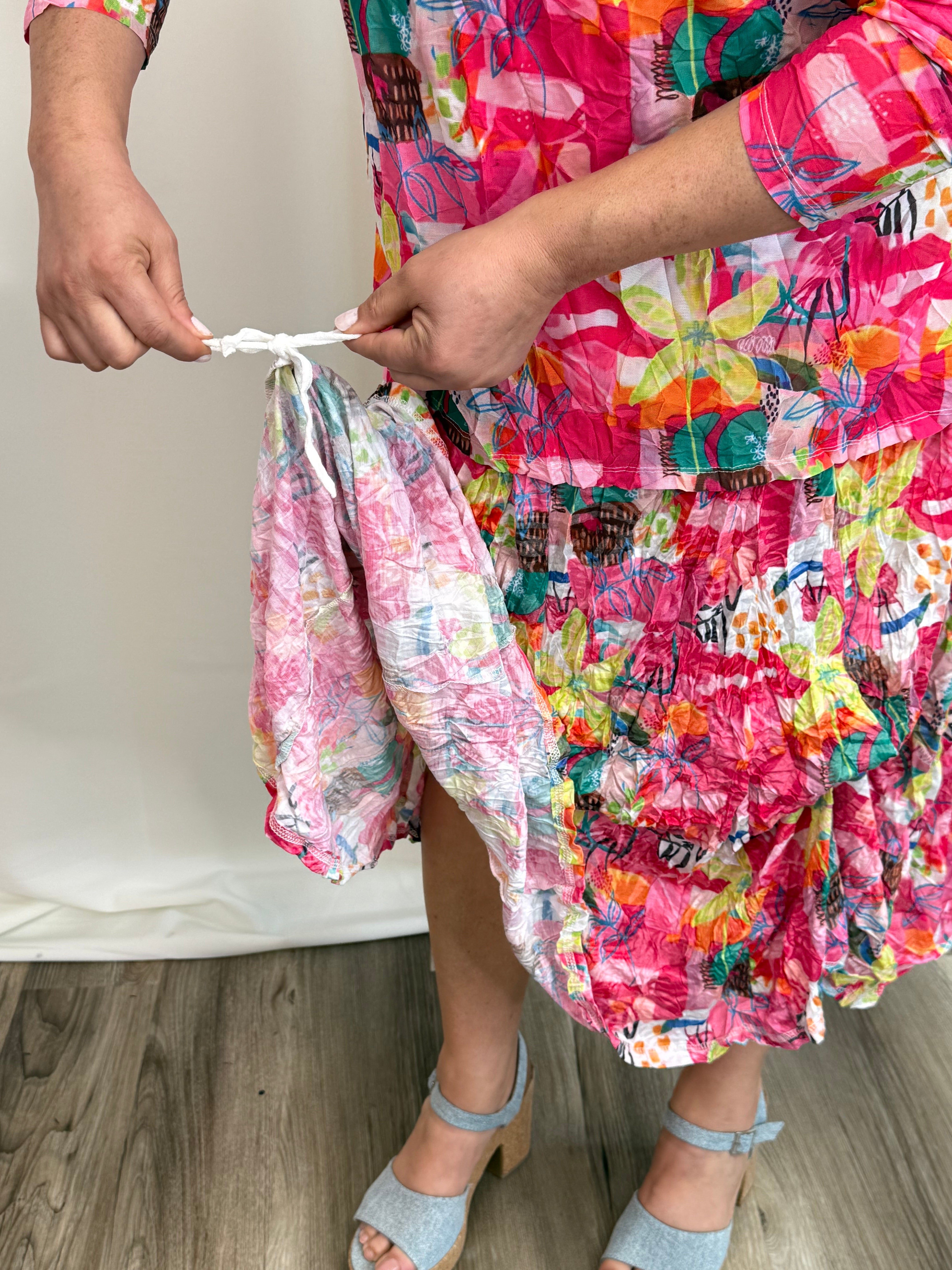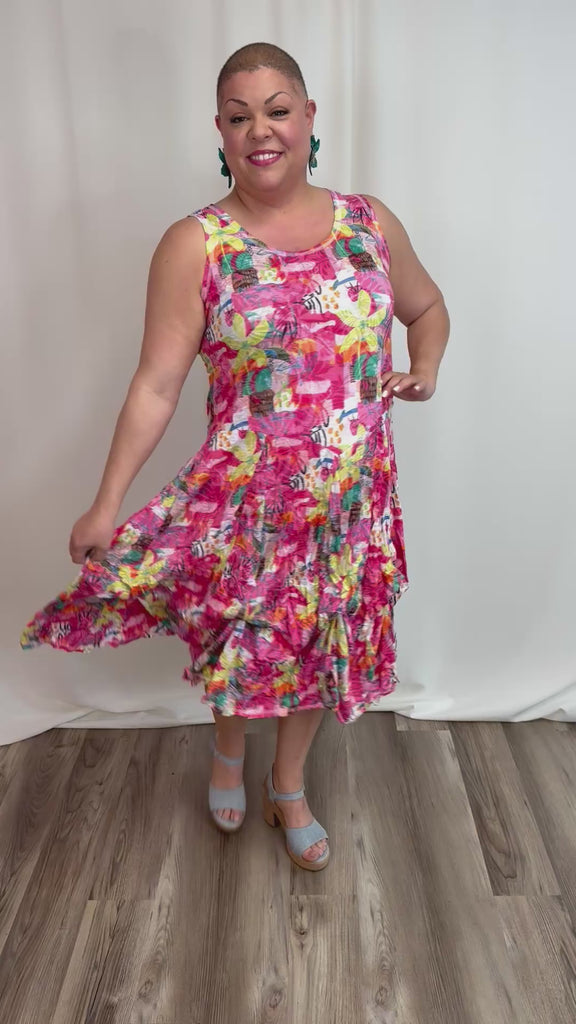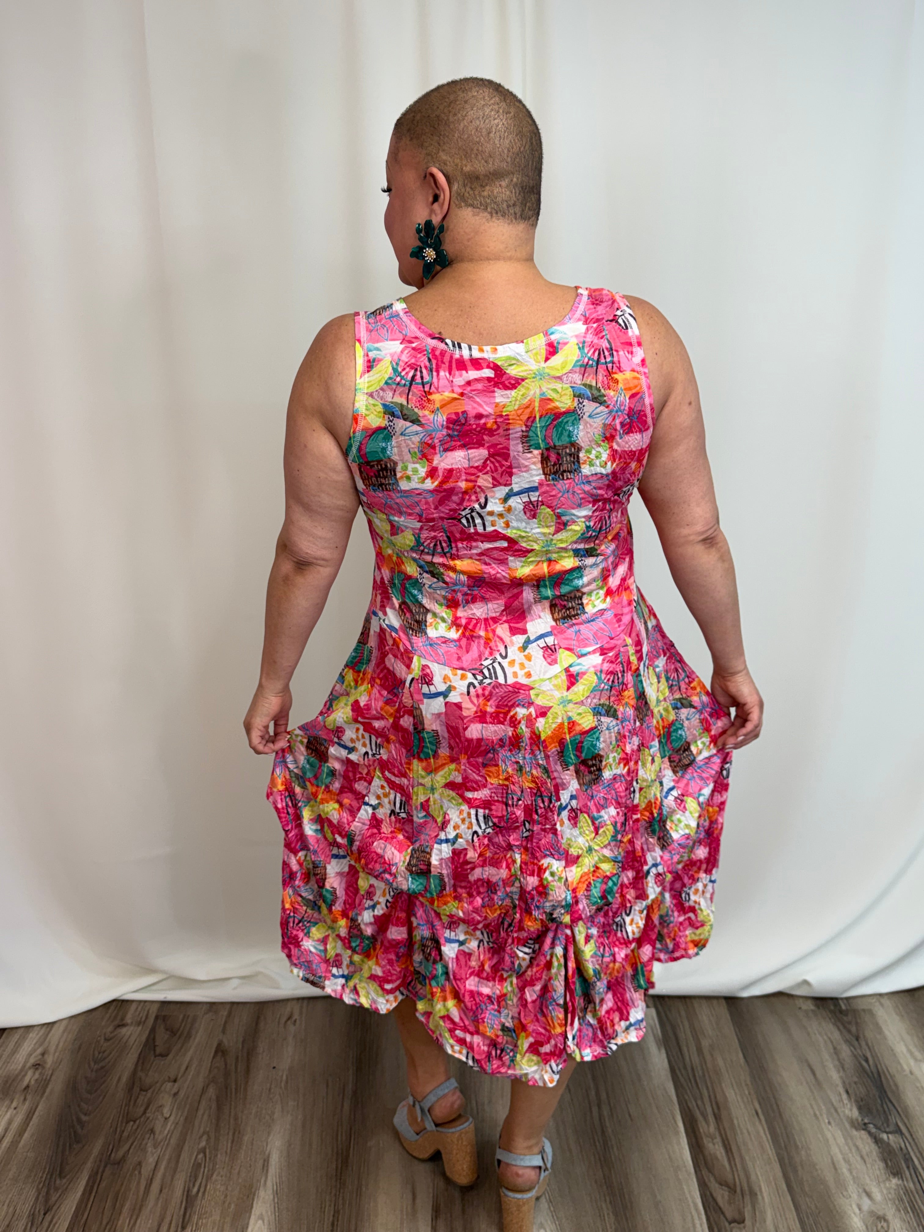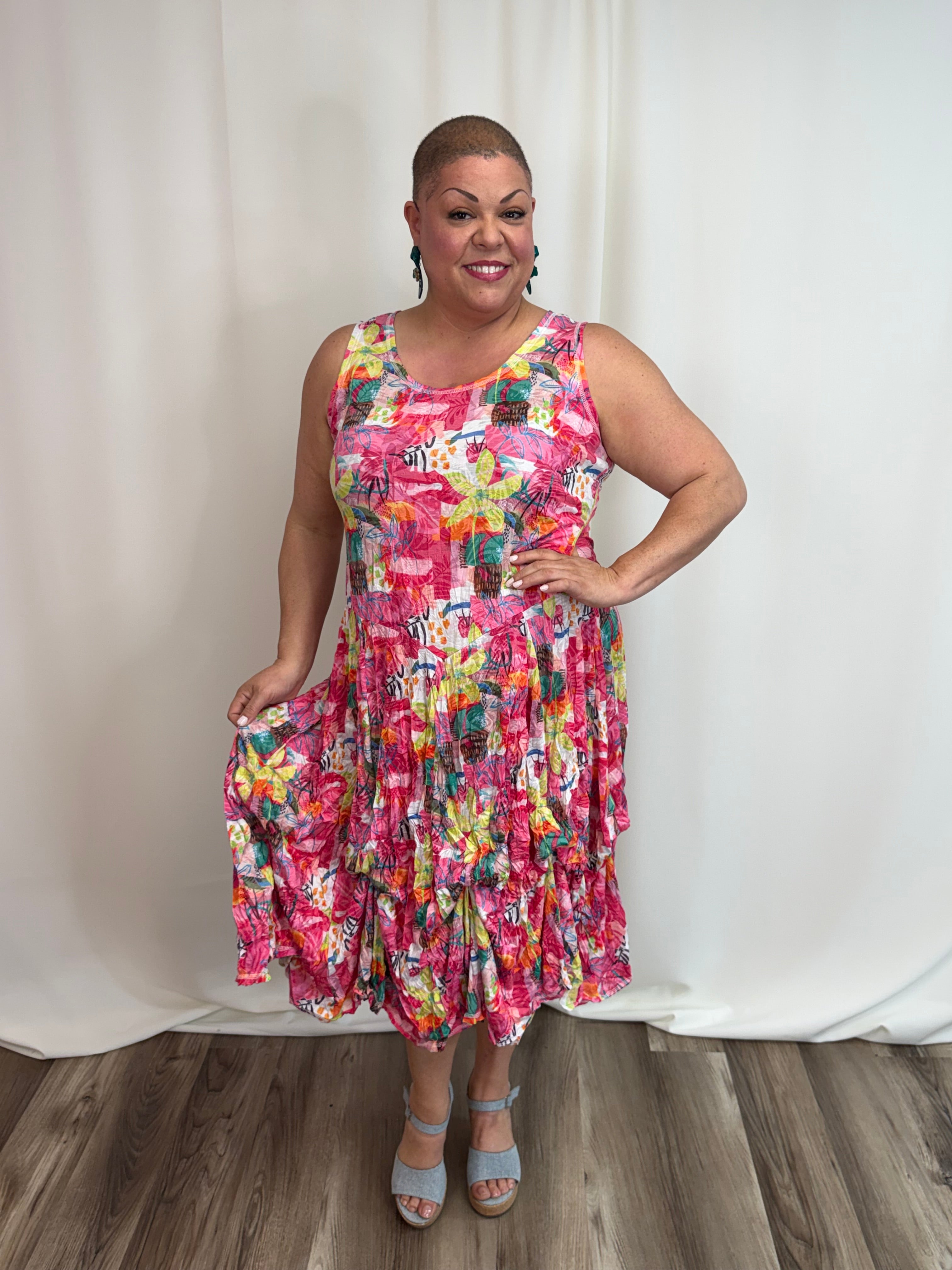 The Island Escape Bustle Dress is a versatile classic featuring hidden bustle ties that let you transform the silhouette instantly. Adjust the front or sides for a playful high-low look, fully bustle for a shorter silhouette, or wear it flowing and relaxed. Flattering across all body types and sizes, this vibrant dress moves seamlessly from casual days to evening occasions. Style with sandals for understated elegance or layer with a linen jacket for added sophistication.