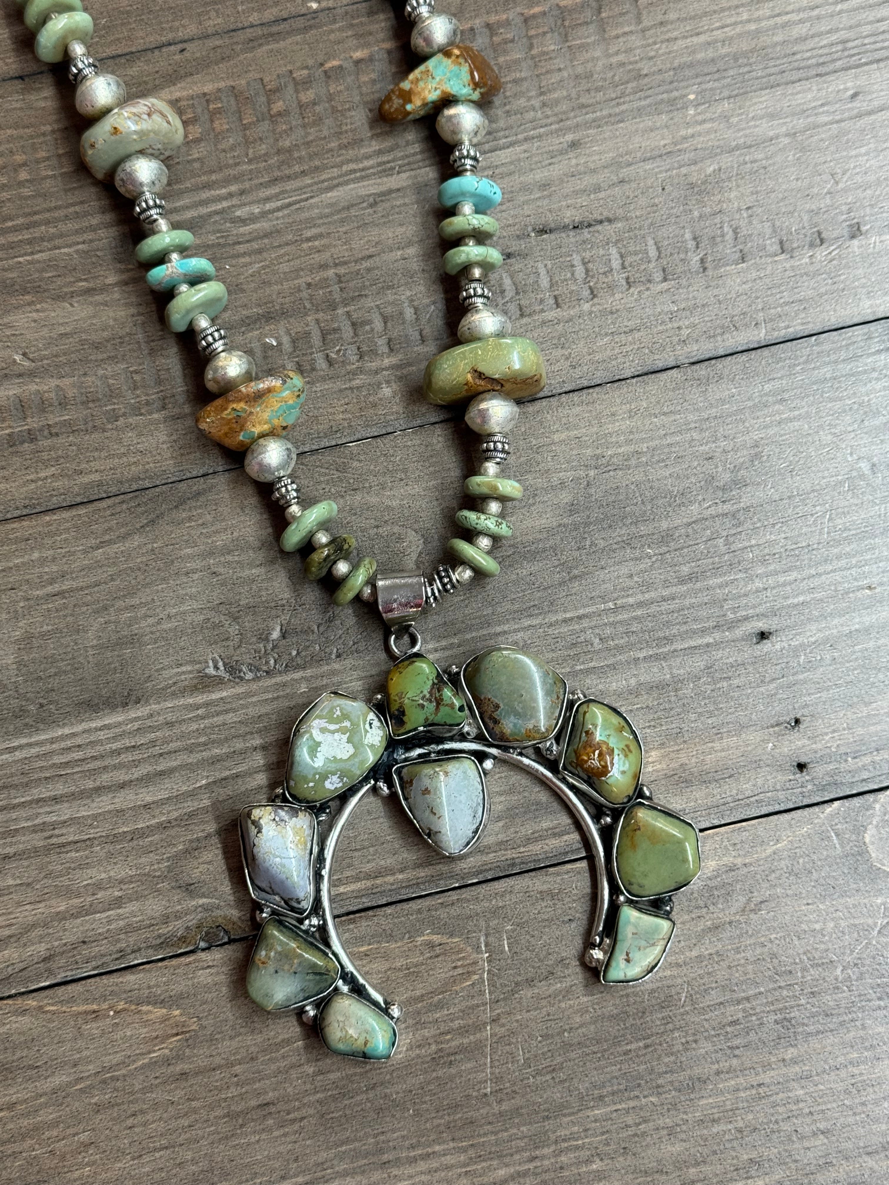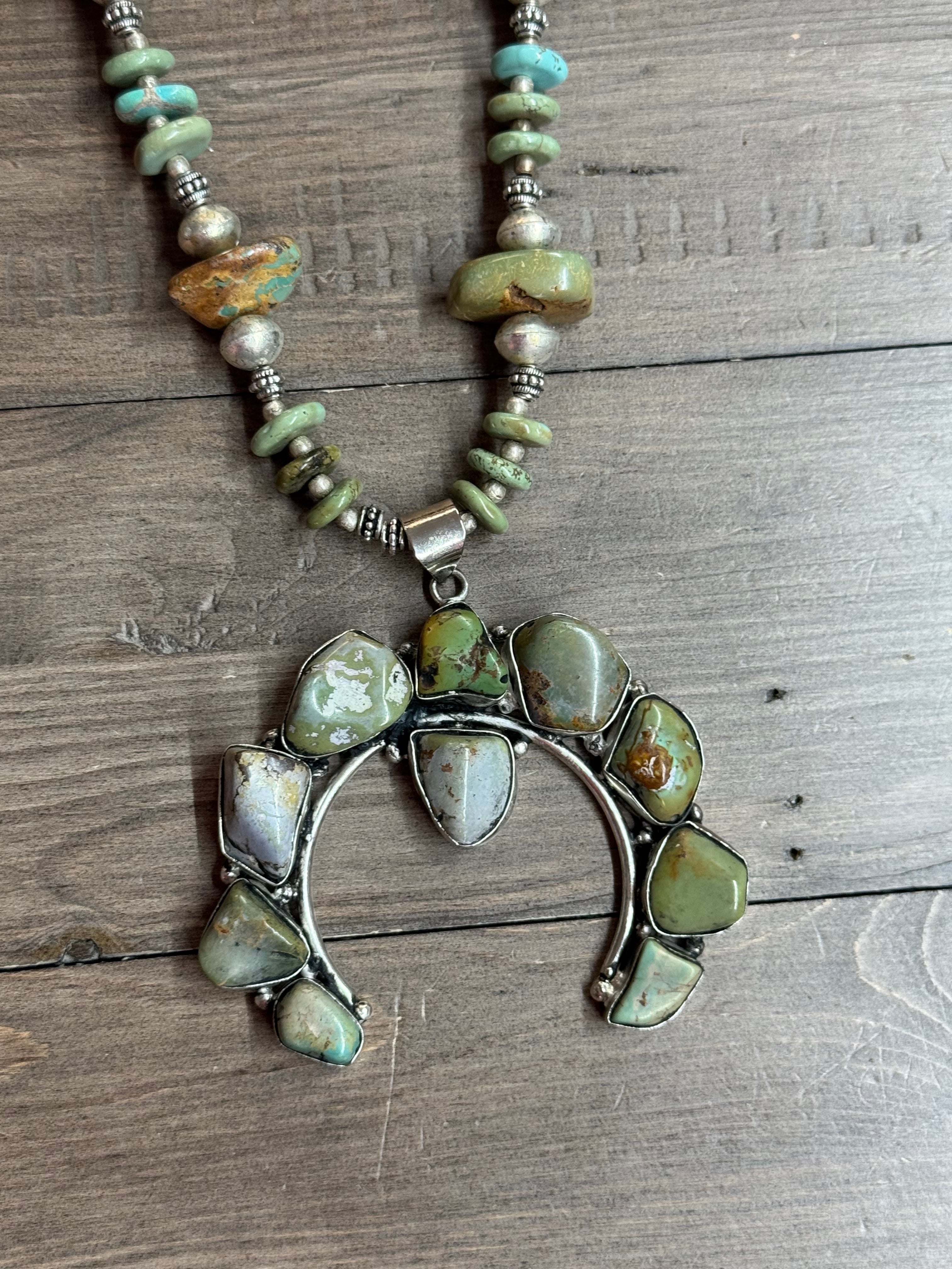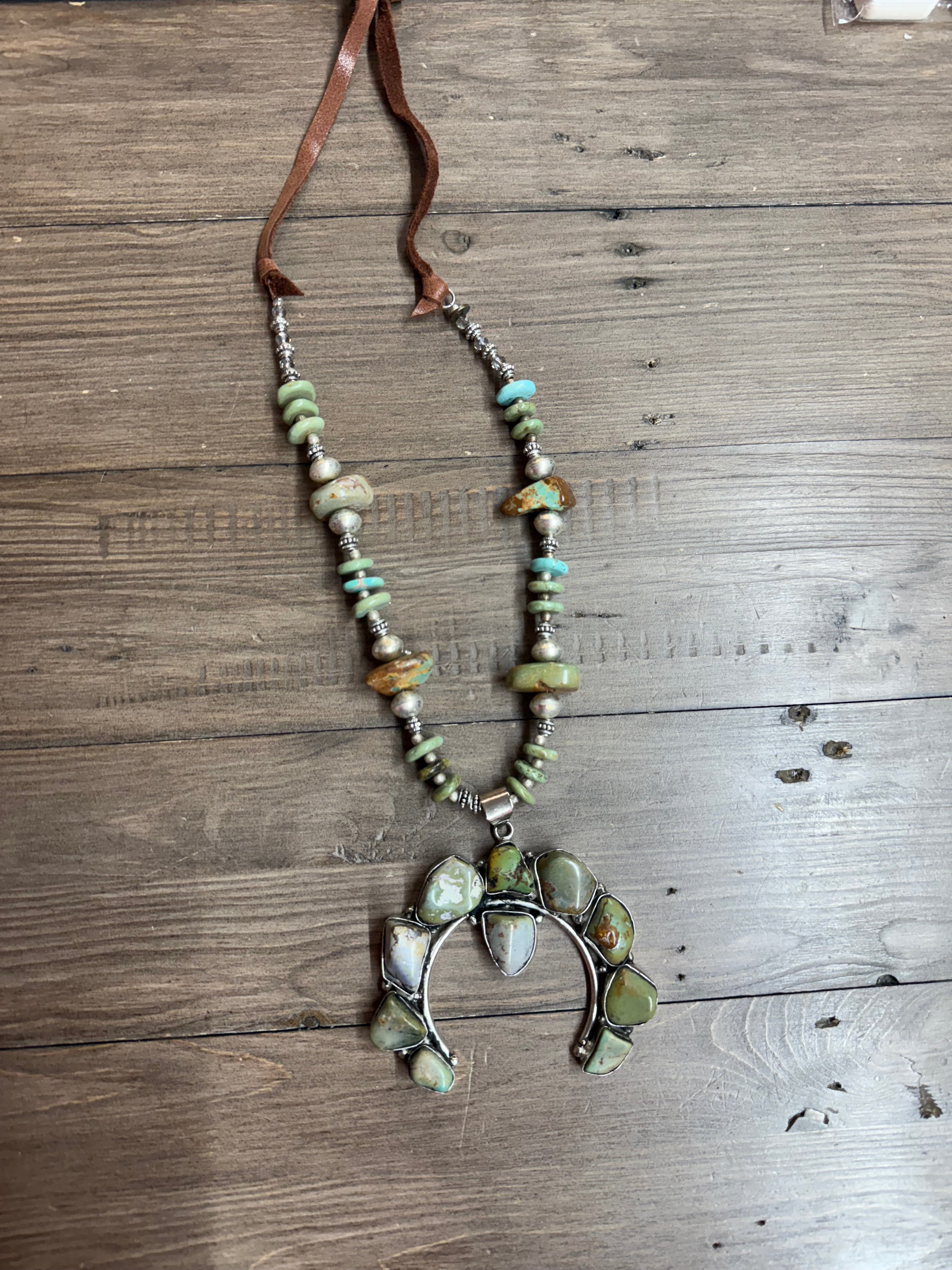 Elevate your accessory game with this eye-catching Navajo turquoise necklace that's equal parts bold and beautiful. Featuring shimmering crystals that dance with light, it's the perfect finishing touch for everything from red-carpet moments to casual coffee runs. This piece strikes that sweet spot between refined elegance and fun-loving flair—ideal for anyone who refuses to play it safe with their style. Watch it become your go-to conversation starter.