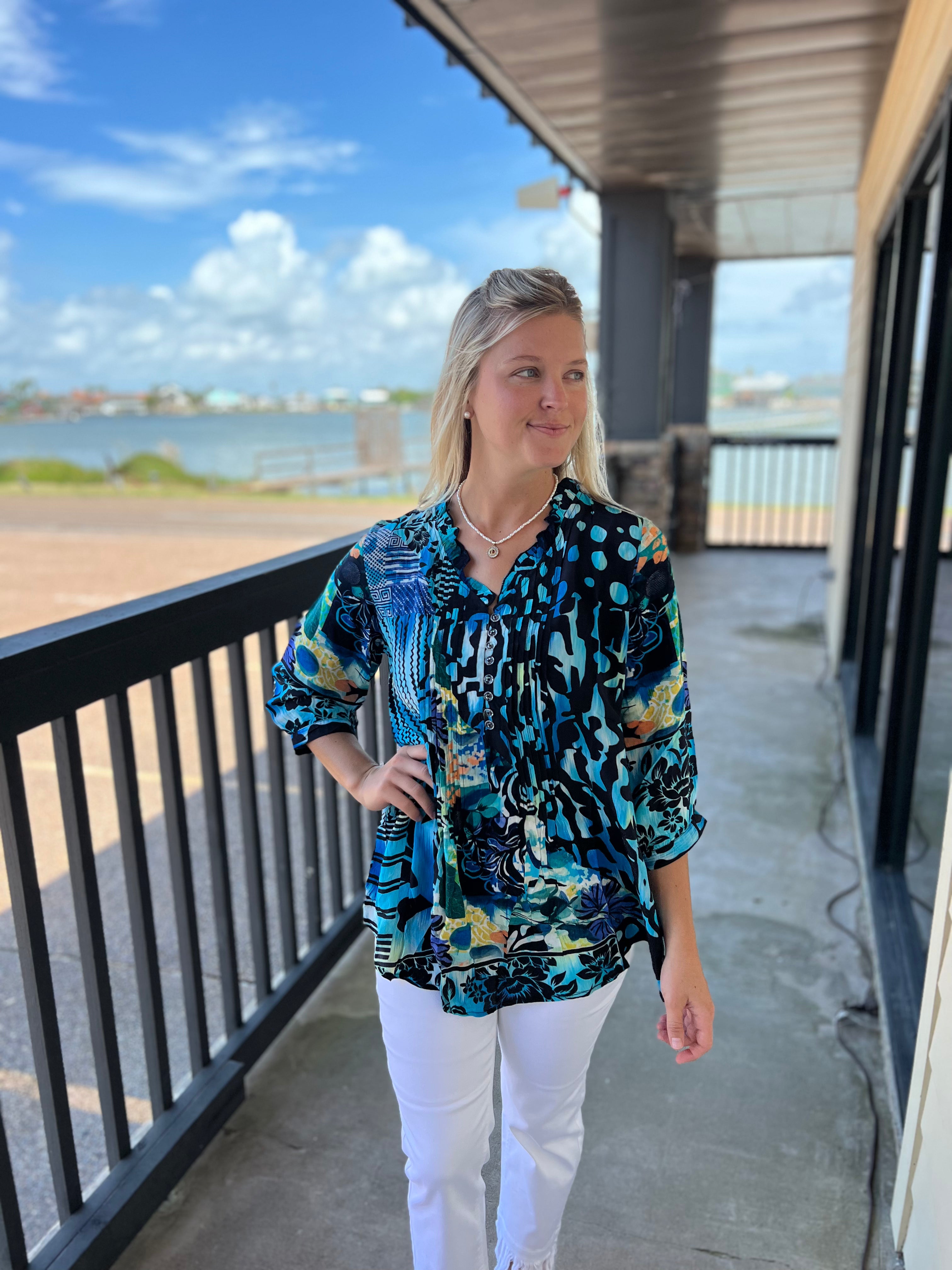 Navy Silk Top