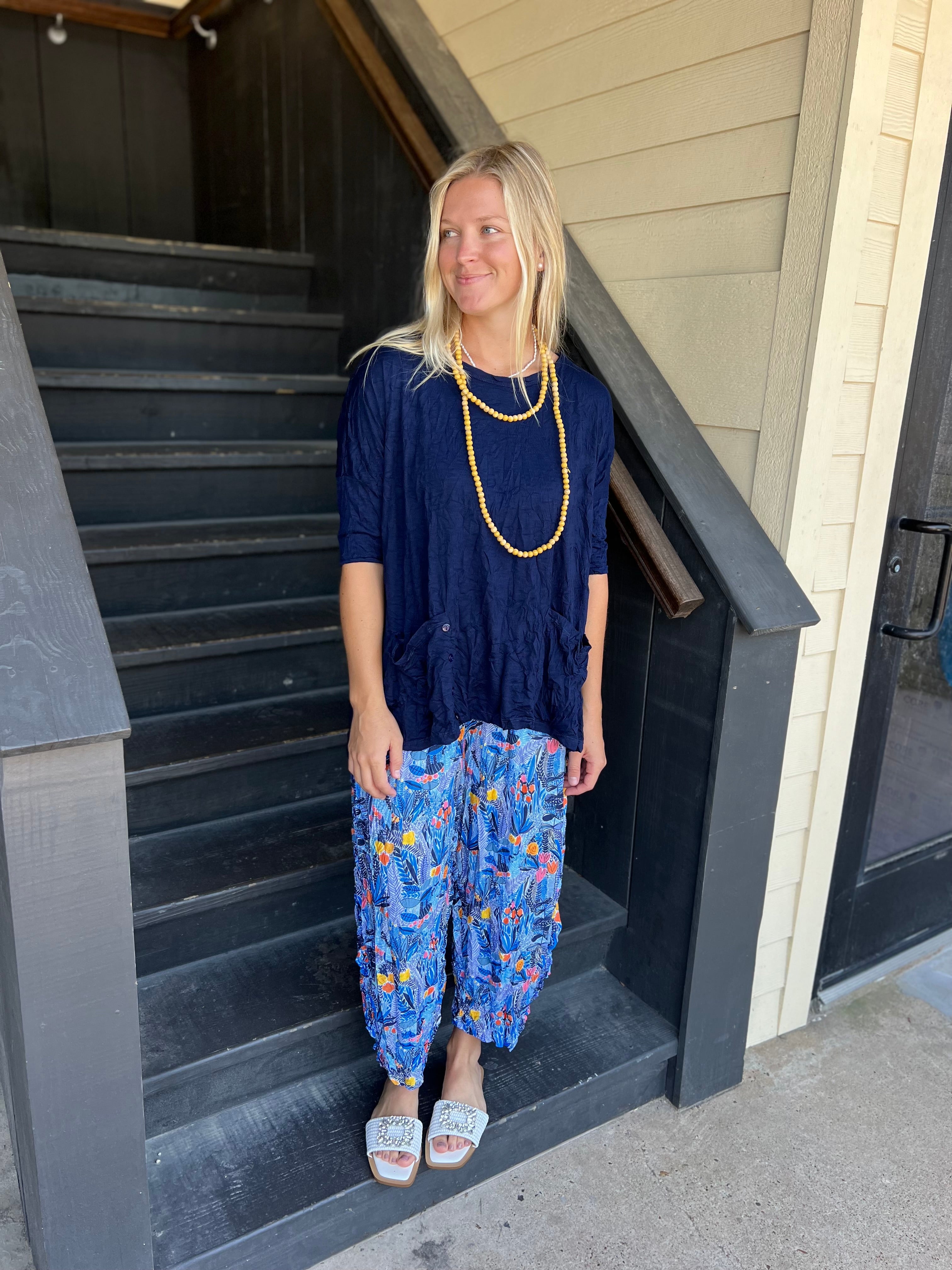 Navy Sleeve Top