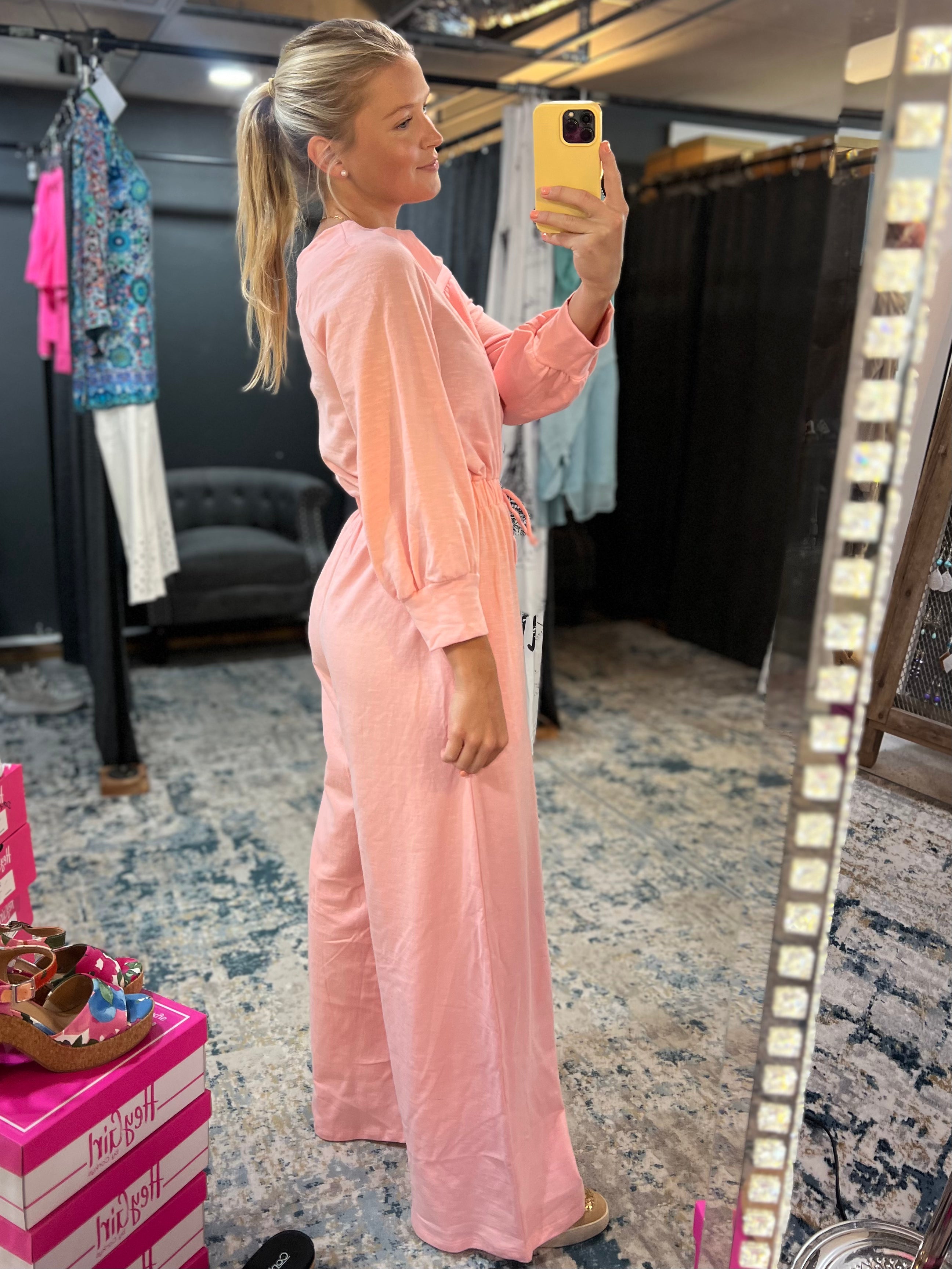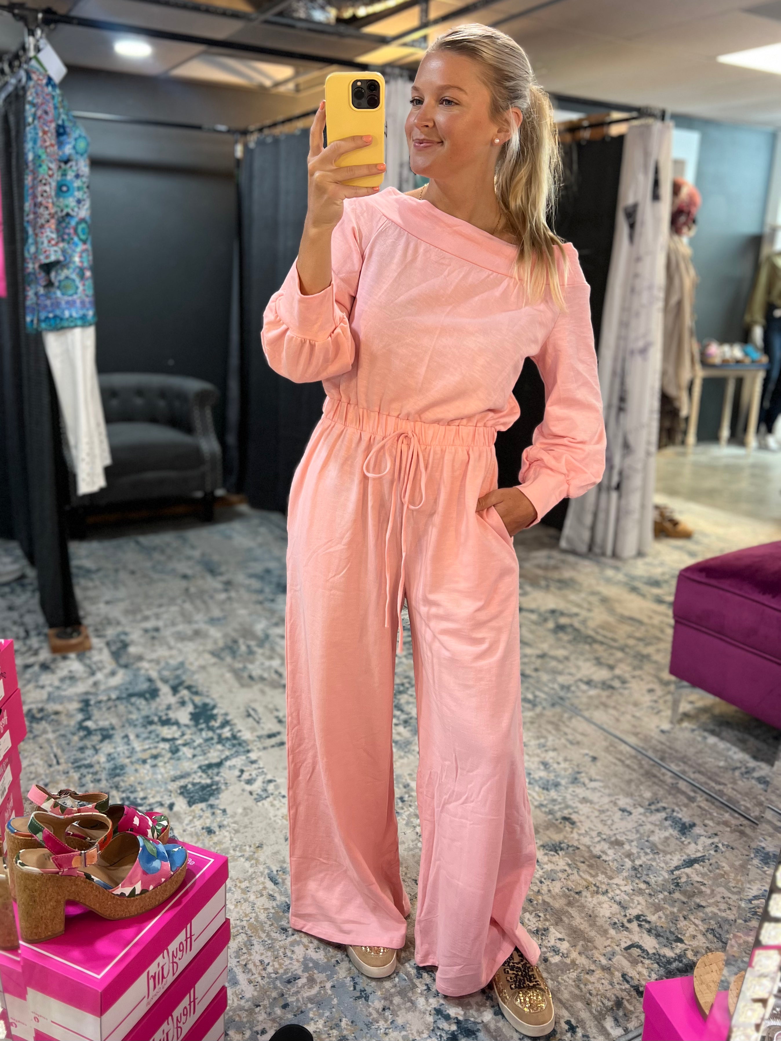 One Shoulder Baby Pink Jumpsuit