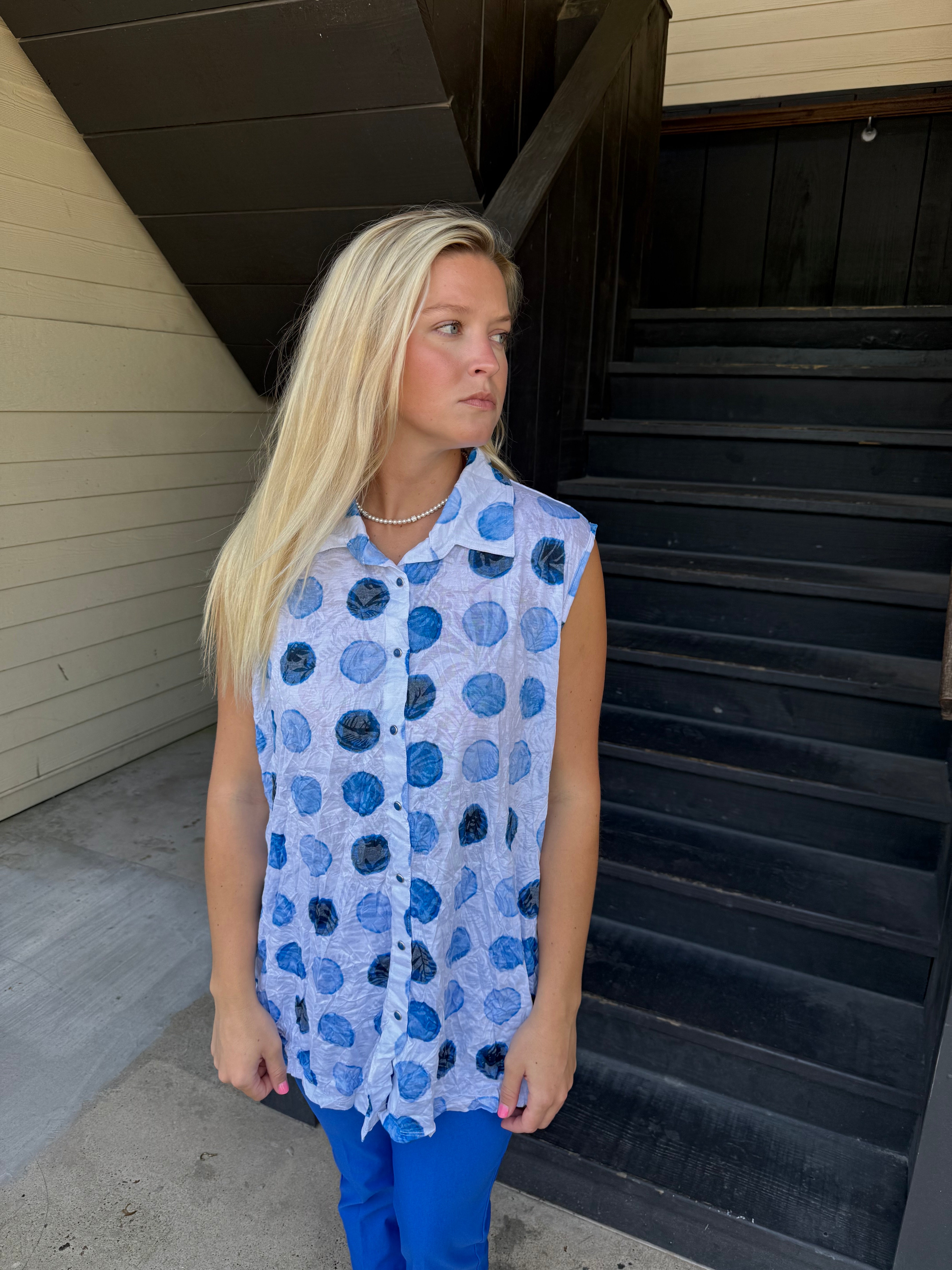 Polka Dot Blue Crinkle Tank