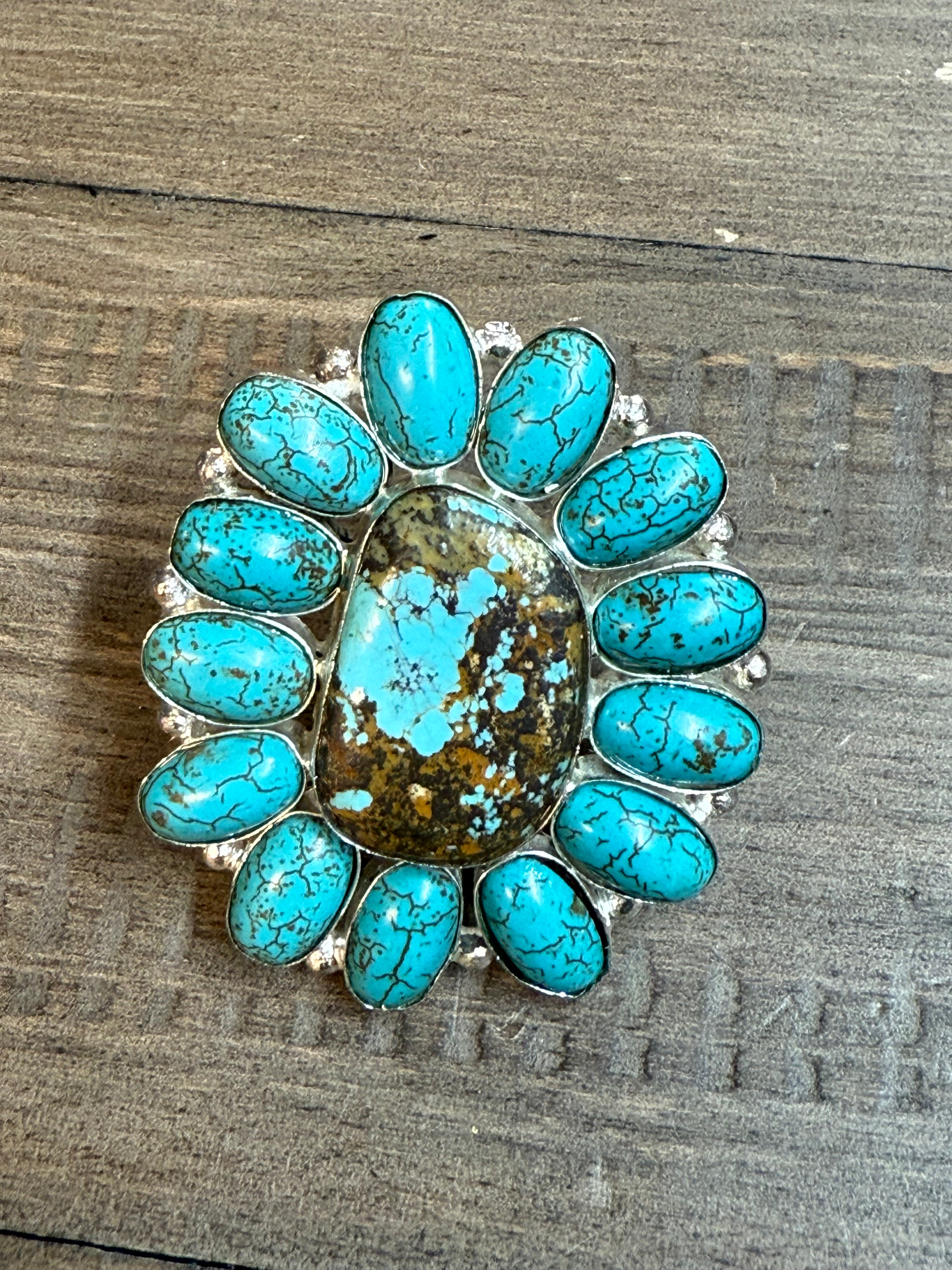 Crafted with care in the heart of Magnolia, Texas, this charming turquoise ring brings a splash of southwestern flair to your jewelry collection. Each piece is uniquely handmade, capturing the natural beauty of genuine turquoise in a timeless round setting. Perfect for adding a pop of color to any outfit or gifting to someone who loves artisan-made accessories.