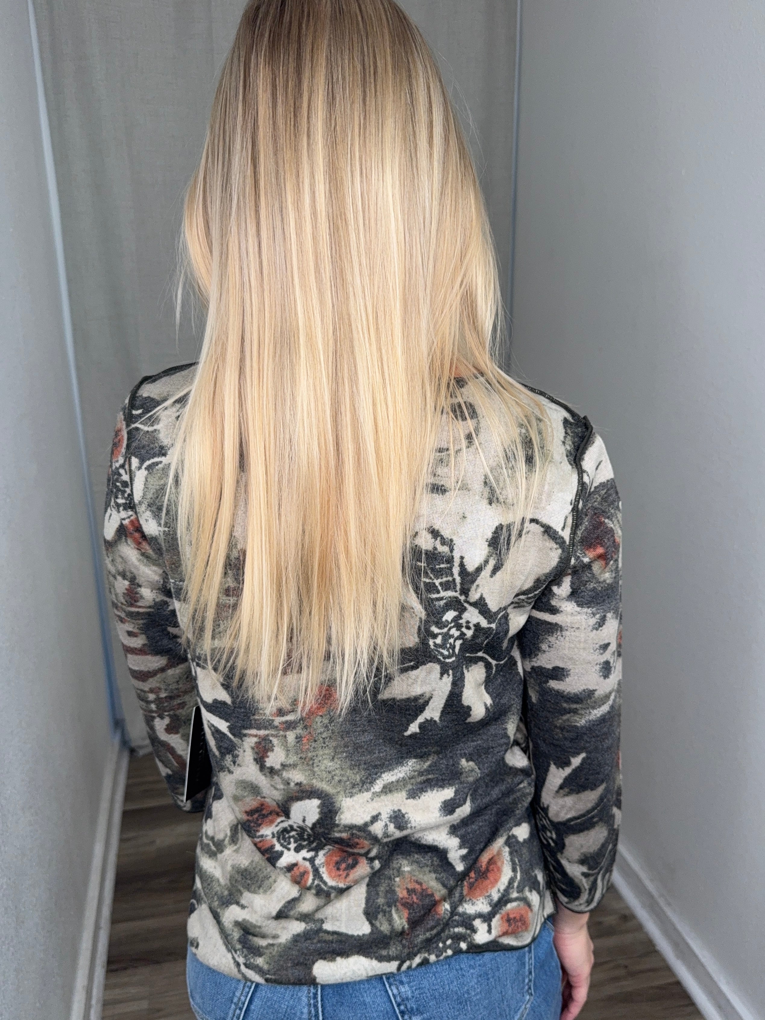 The Reversible Crew Neck offers two distinct looks in one versatile piece, making it a smart addition to any wardrobe. Its all-over patchwork-inspired print blends intricate motifs with rich color contrasts, creating a visually striking yet wearable design. Crafted from a soft, comfortable knit, it feels effortless against the skin and drapes beautifully for a flattering fit. The classic crew neckline and long sleeves make it an easy layering piece, while the reversible construction lets you switch up your style with ease. Perfect for casual days or adding an artistic touch to your everyday outfits, this top balances creativity with comfort.